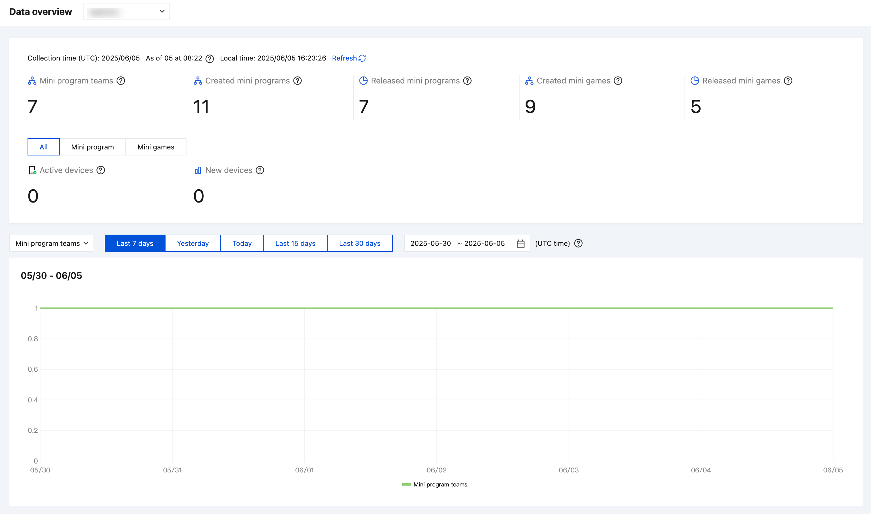 Superapp 团队下有该模块权限的成员,可查看所属团队下小程序和小游戏的大致数据。