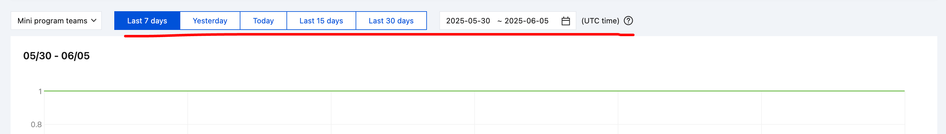 折线图上方有快捷时间选项,可选择“最近 7 天、昨天、今天、最近 15 天、最近 30 天”,或自定义时间范围,最多可查询 90 天内的数据(含当天)。