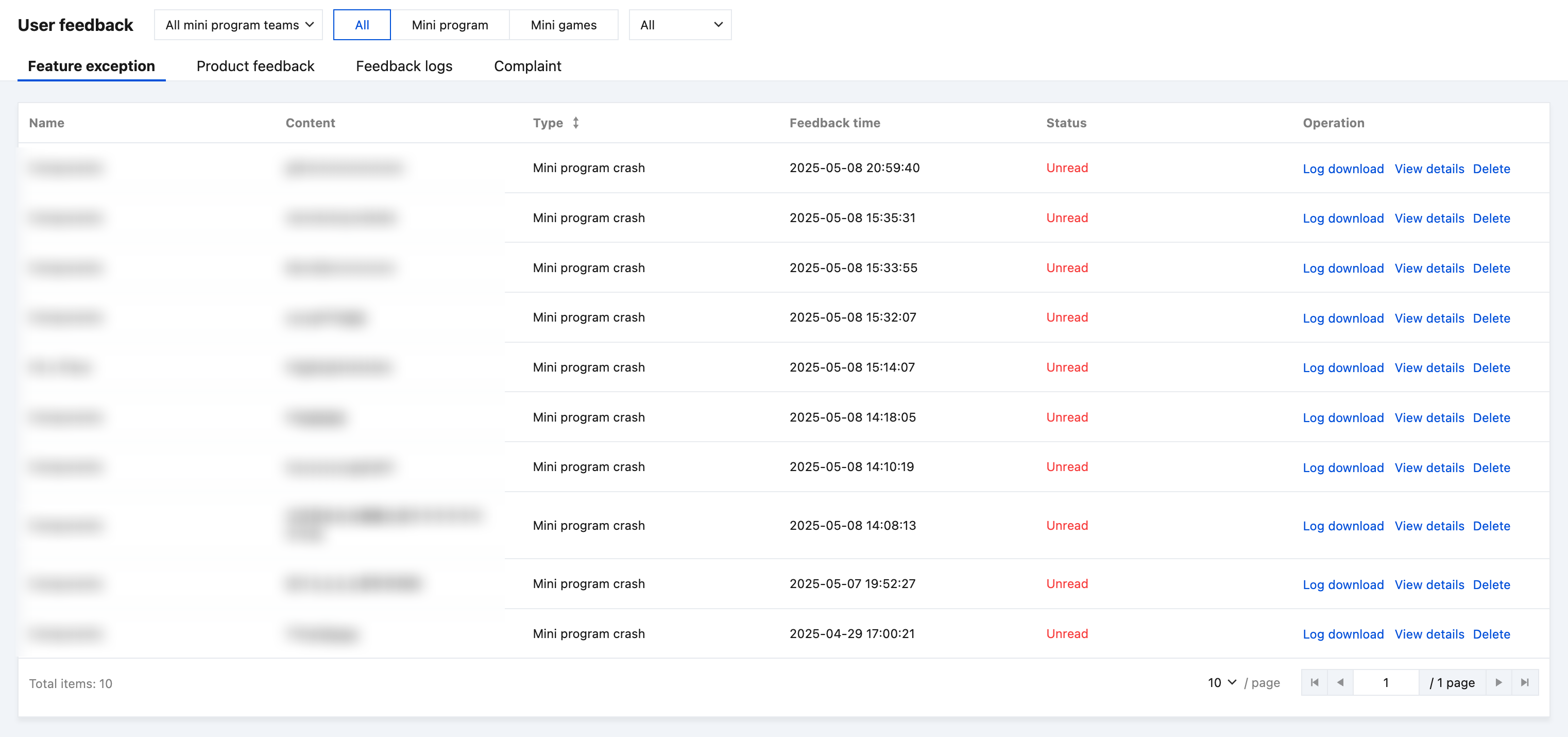 反馈日志 | ✓ | ✓ | ✓ | ✓ | ✓ | ✓ | ✓ | ✓ | ✓ | ✓ |