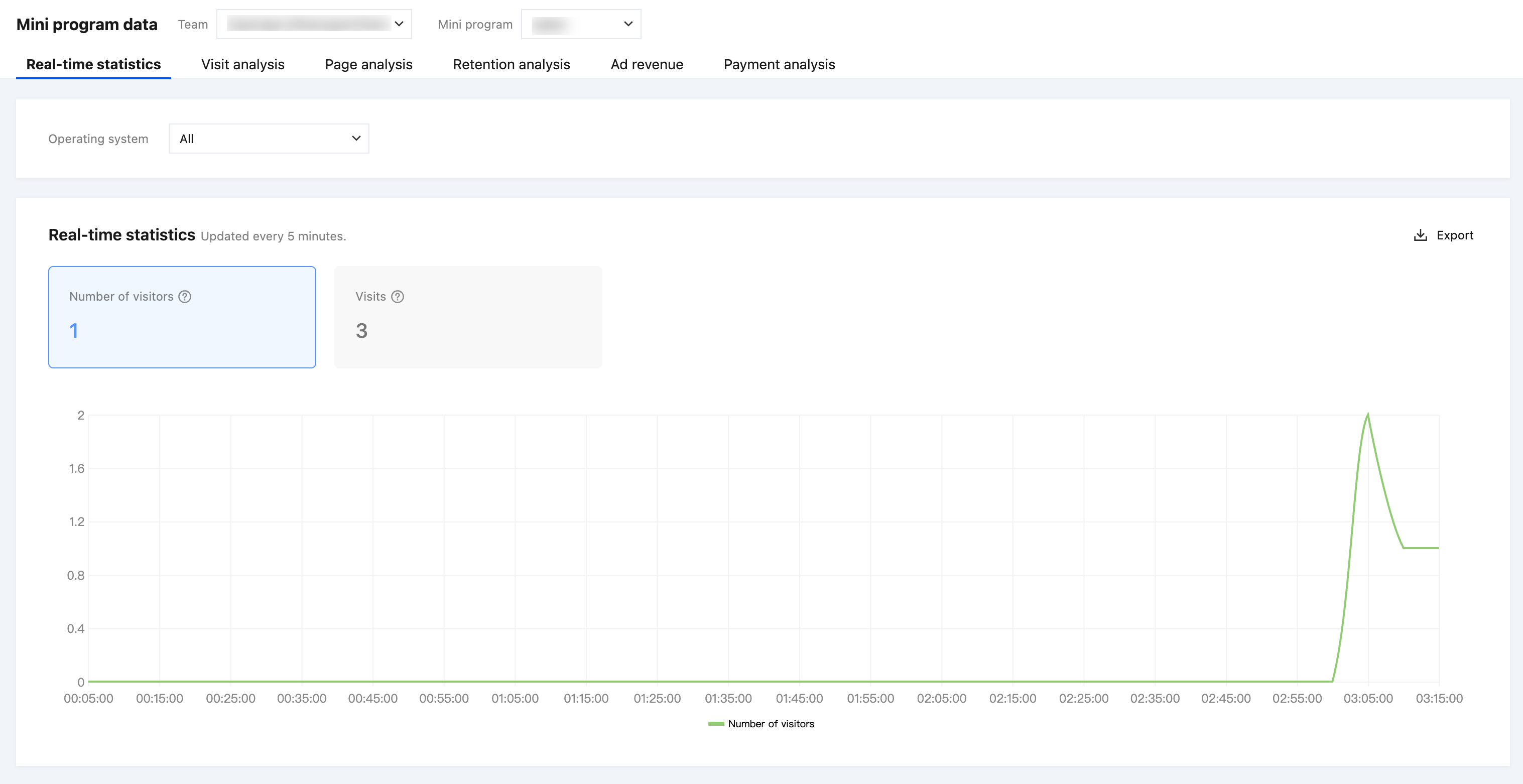 针对访问人数、访问次数进行实时在线统计展示。可区分不同操作系统进行查看,右上角可下载当前展示数据。数据每五分钟刷新一次。