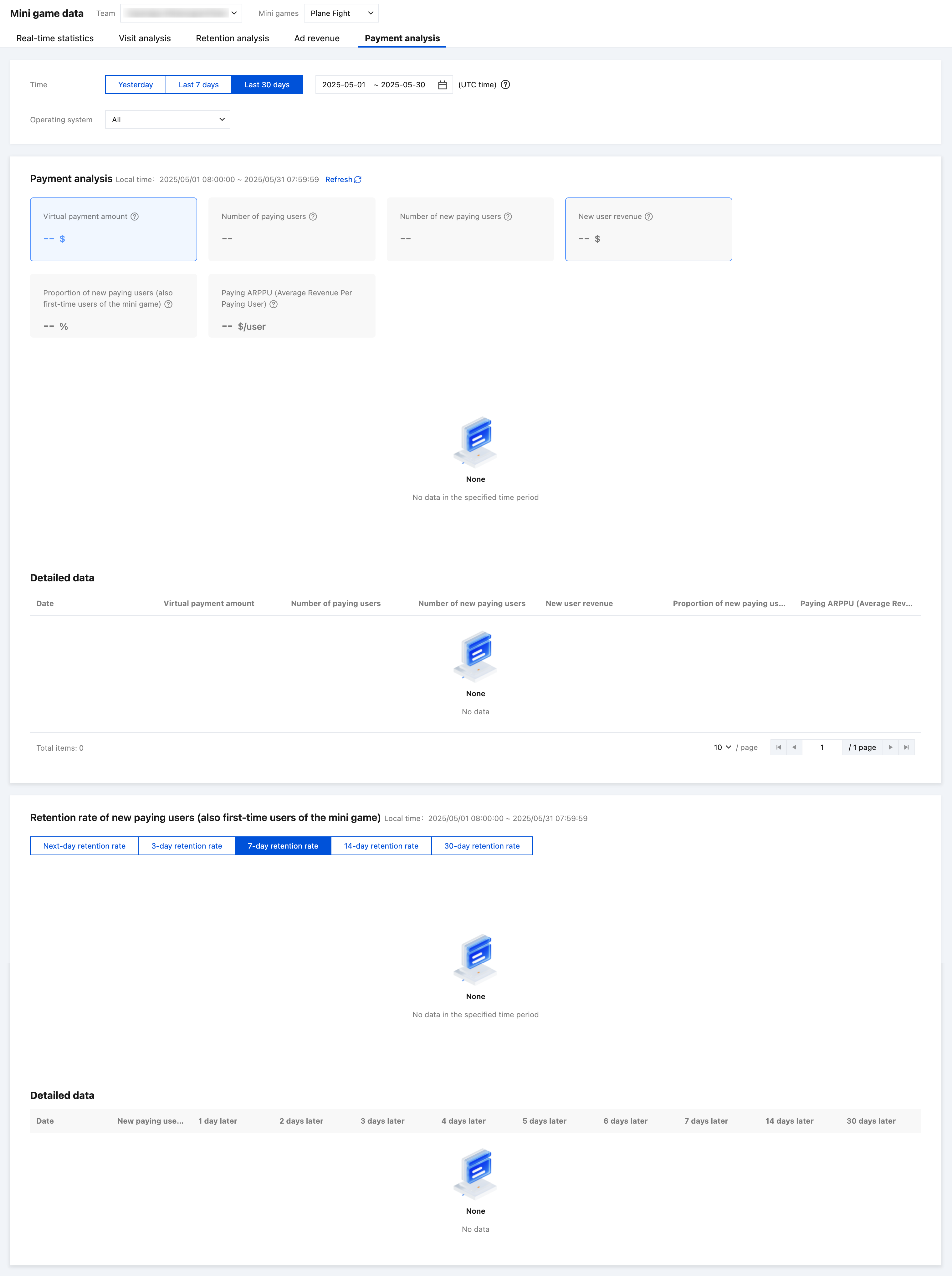 虚拟支付金额 | 所有用户在小游戏内付费总金额,分成前付费总金额 |