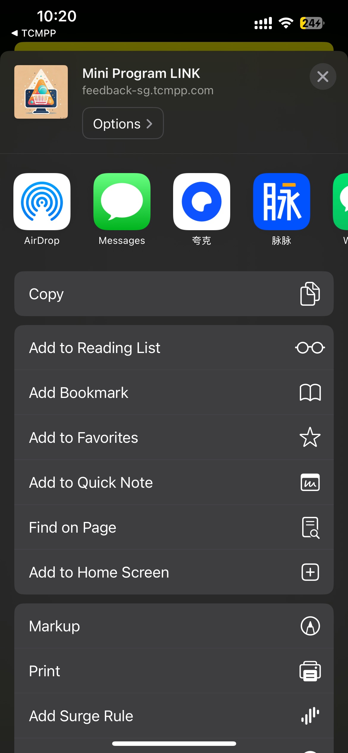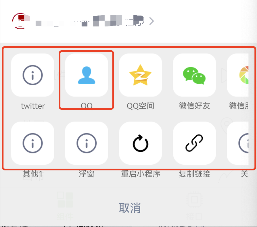 // Superapp可以自定义分享途径、决定展示顺序,目前使用在点击更多按钮、button组件(open-type="share")呼起的ActionSheet中// 1、默认渠道:QQ好友、QQ空间、微信、朋友圈(具体type参见MAUIDelegateShareViewType),由开发商决定,Superapp只能更改展示顺序// 2、自定义分享渠道:Superapp自定义(type填MAUIDelegateShareViewTypeCustomizedShare,自定义MAShareTarget,建议大于100,在小程序页面中onShareAppMessage 回传分享内容,统一走shareMessageWithModel由Superapp根据ShareTarget来分别处理)// 3、自定义事件:Superapp自定义(type填MAUIDelegateShareViewTypeCustomizedAction)// 以上三种渠道展示顺序支持混排///// The host App can customize the sharing path and determine the display order. It is currently used in the ActionSheet called up by clicking the more button or button component (open-type="share")// 1. Default channels: QQ Friends, QQ Space, WeChat, Moments (for specific types, see MAUIDelegateShareViewType), decided by the developer, the host App can only change the display order// 2. Customized sharing channel: Host App customization (type fills in MAUIDelegateShareViewTypeCustomizedShare, custom MAShareTarget, it is recommended to be greater than 100, in the mini program page, onShareAppMessage returns the sharing content, use shareMessageWithModel uniformly, and the host handles it separately according to ShareTarget)// 3. Custom event processing: Host App customization (type fills in MAUIDelegateShareViewTypeCustomizedAction)// The display order of the above three channels- (NSArray<TMASheetItemInfo *> *)customizedConfigForShare;