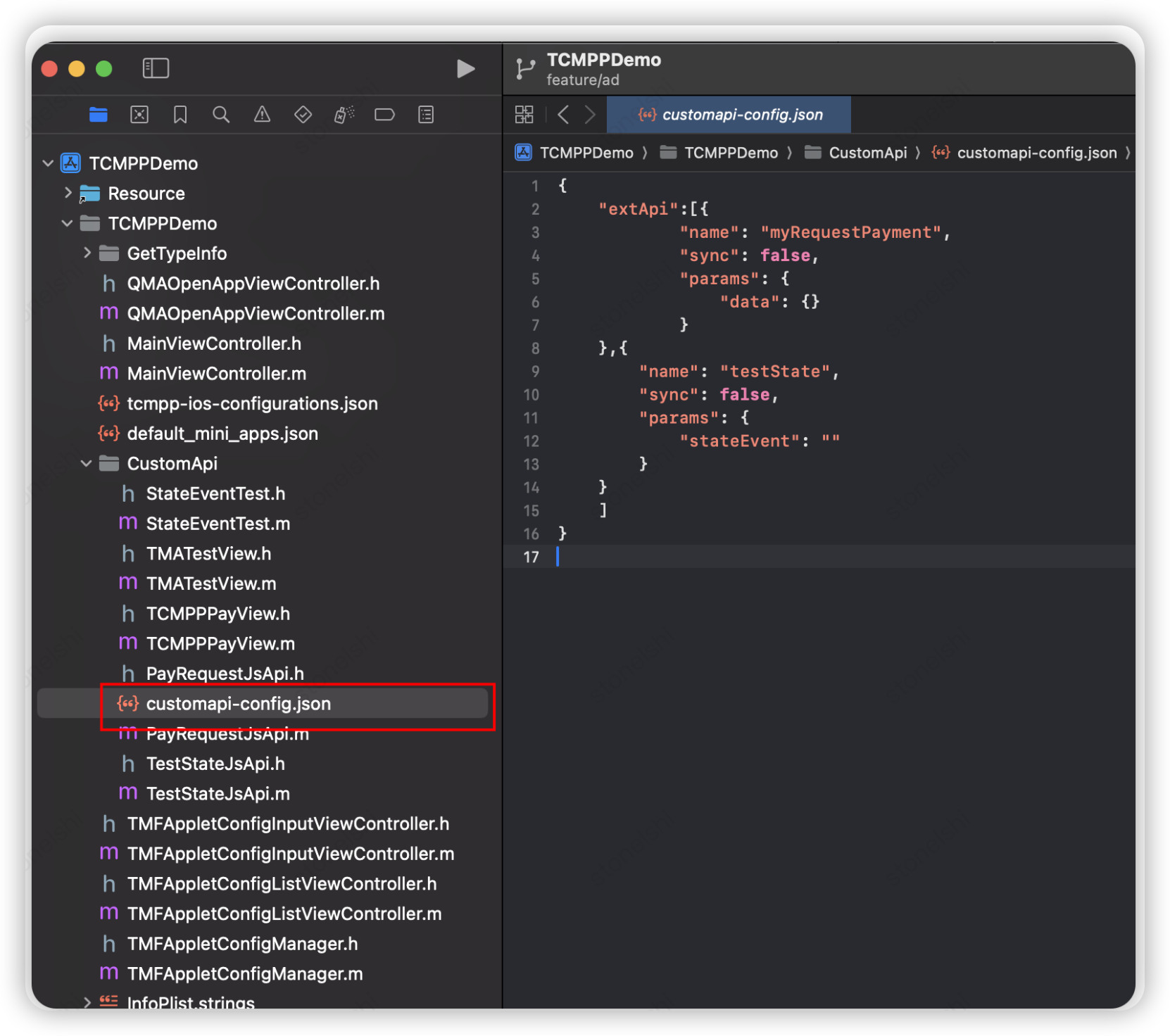 [[TMFMiniAppSDKManager sharedInstance] setCustomApiConfigFile:[[NSBundle mainBundle] pathForResource:@"customapi-config" ofType:@"json"]];