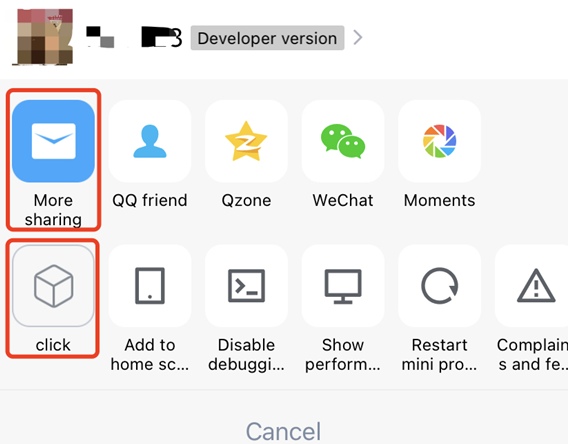 - (NSArray<TMASheetItemInfo *> *)customizedConfigForShare {NSMutableArray *arrays = [[NSMutableArray alloc] init];TMASheetItemInfo *item1 = [[TMASheetItemInfo alloc] initWithTitle:@"More sharing" type:MAUIDelegateShareViewTypeCustomizedShare shareTarget:100 shareKey:@"my"];item1.icon = [UIImage imageNamed:@"icon_moreOperation_shareChat"];[arrays addObject:item1];TMASheetItemInfo *item2 = [[TMASheetItemInfo alloc] initWithTitle:@"click" type:MAUIDelegateShareViewTypeCustomizedAction action:^(TMASheetActionParams * _Nullable params) {NSLog(@"click 点击");}];item2.icon = [UIImage imageNamed:@"icon_moreOperation_collect"];[arrays addObject:item2];return arrays;}