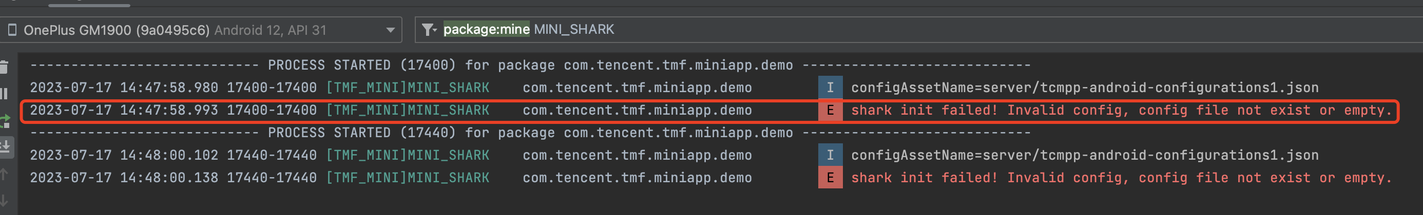 如果小程序 SDK 初始化失败,会看到如下的异常日志输出: