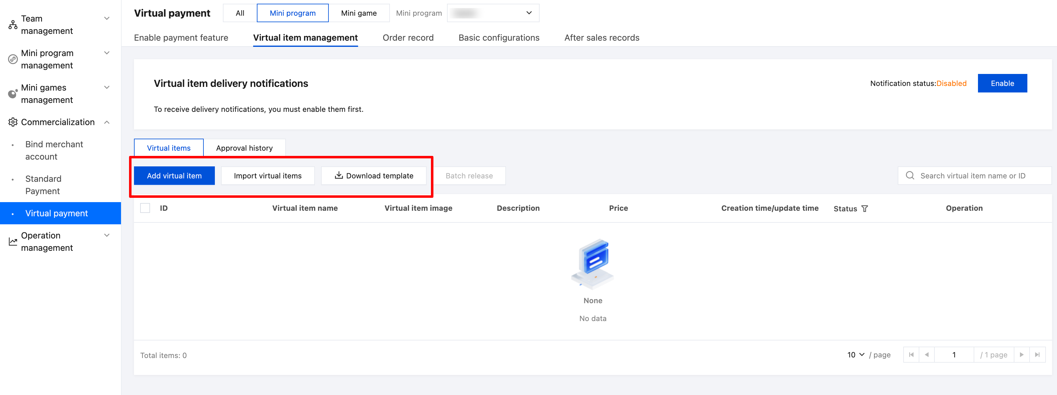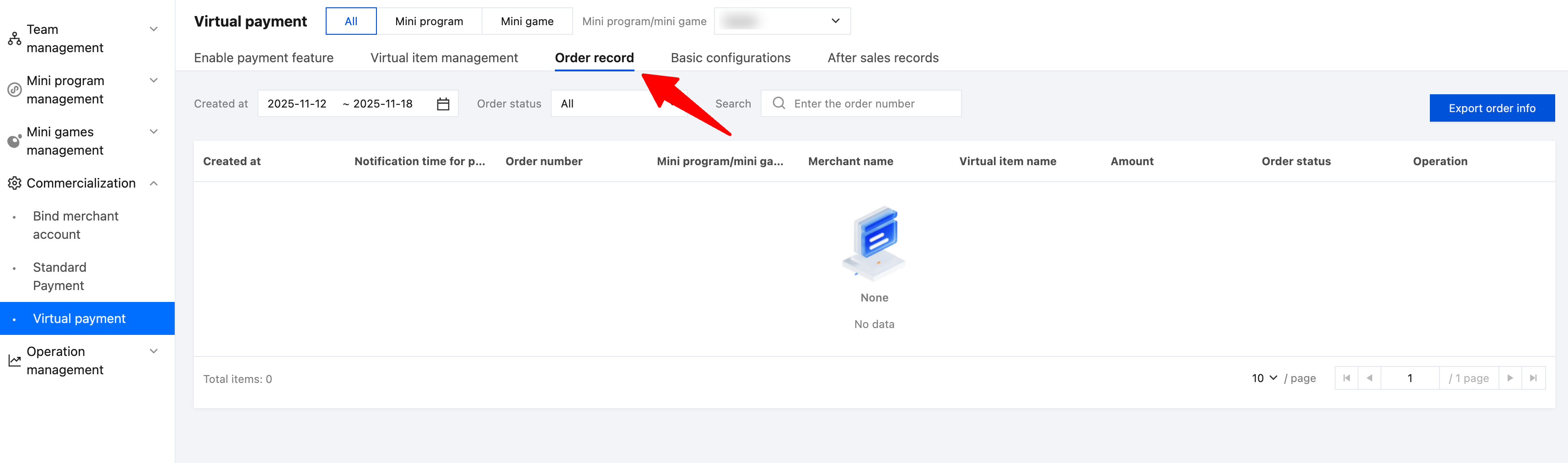 当玩家在小程序中购买了道具并完成支付后,即可在“虚拟支付-订单记录”中查询道具直购订单。