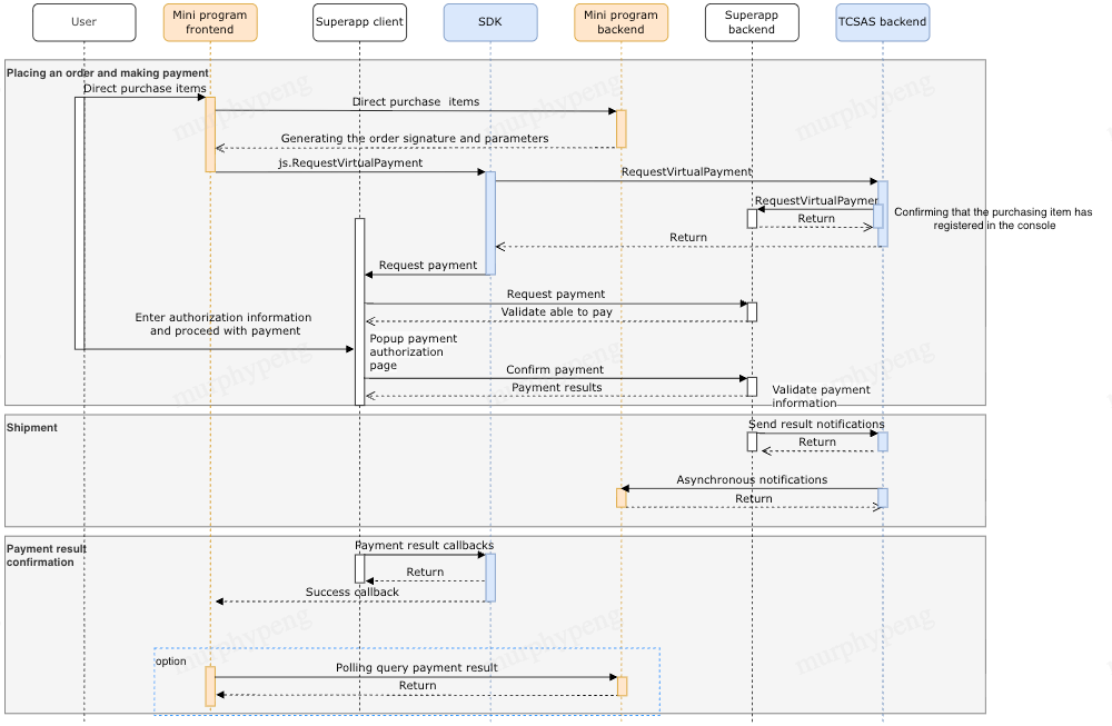@ProxyService(proxy = MiniOpenApiProxy.class)public class MiniOpenApiProxyImpl extends MiniOpenApiProxy {@Overridepublic void requestVirtualPayment(IMiniAppContext miniAppContext, JSONObject params, AsyncResult result) {// call your custom payment implementationboolean paySuccess = PaymentManagerV2.g().startMidasPayment(miniAppContext, params, result);// notify payment result with AsynResultif(paySuccess){result.onReceiveResult(true,successData);}else{result.onReceiveResult(false,failedData);}}}