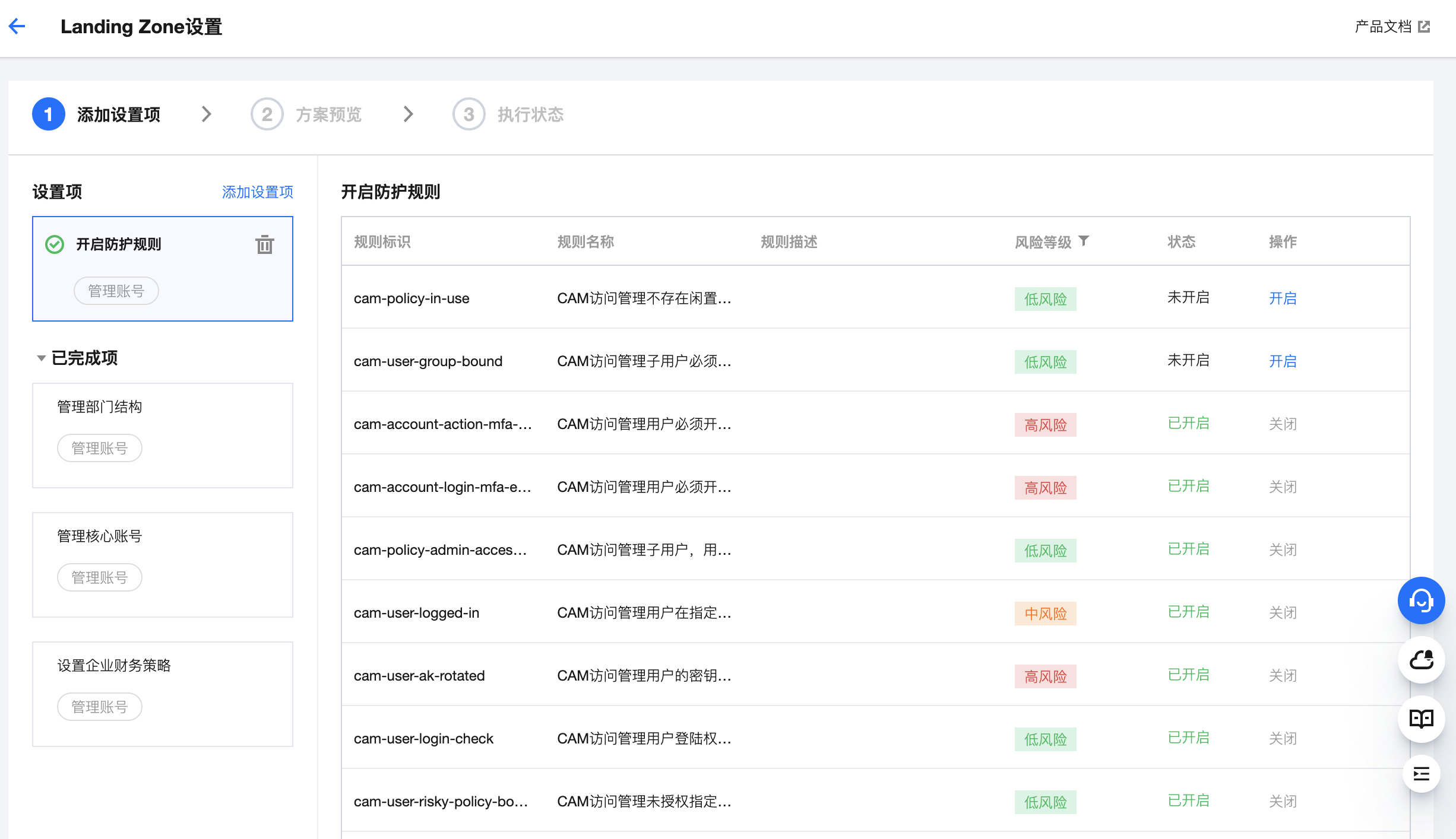 设置防护规则可以为您提供更加安全的多账号环境,您可以在控制中心统一管理防护规则,本文为您介绍如何在 Landing Zone 中设置防护规则。