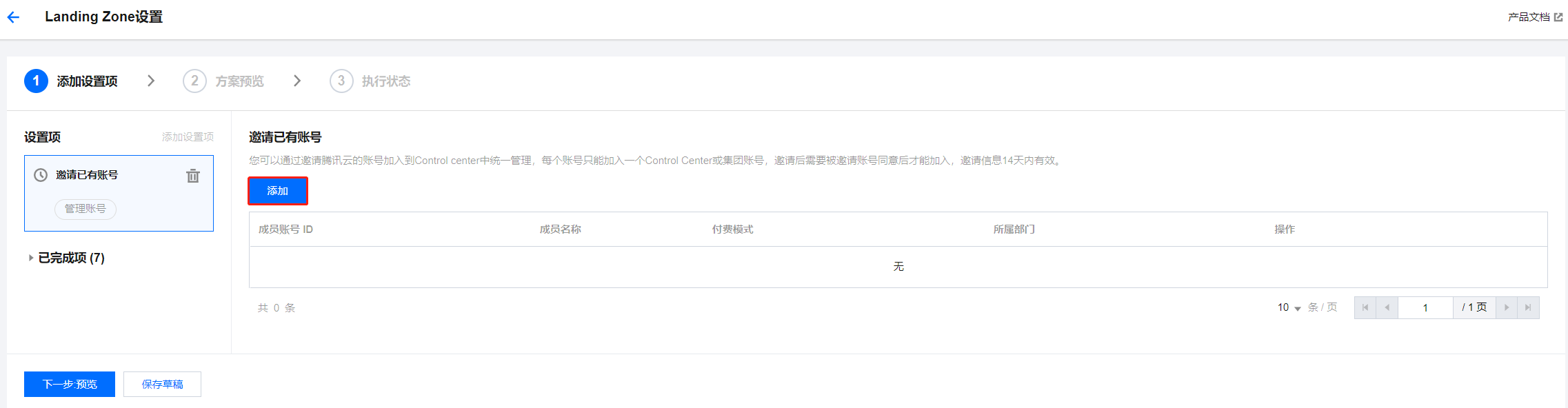 6. 成员账号无误后,单击下一步:预览,进入方案预览页面。