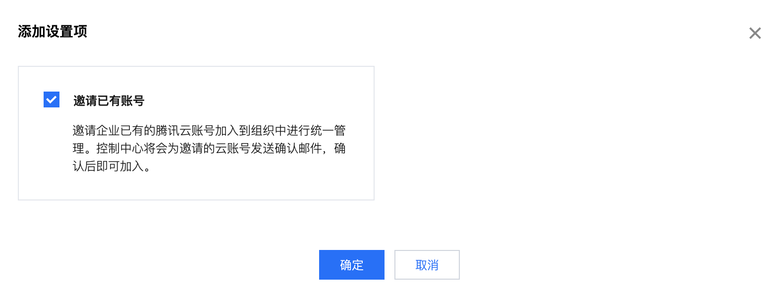 您可以邀请企业已有的腾讯云账号加入到组织中进行统一管理。控制中心将会为邀请的云账号发送确认邮件,被邀请的账号确认后即可加入。本文将为您介绍如何邀请已有账号加入组织。