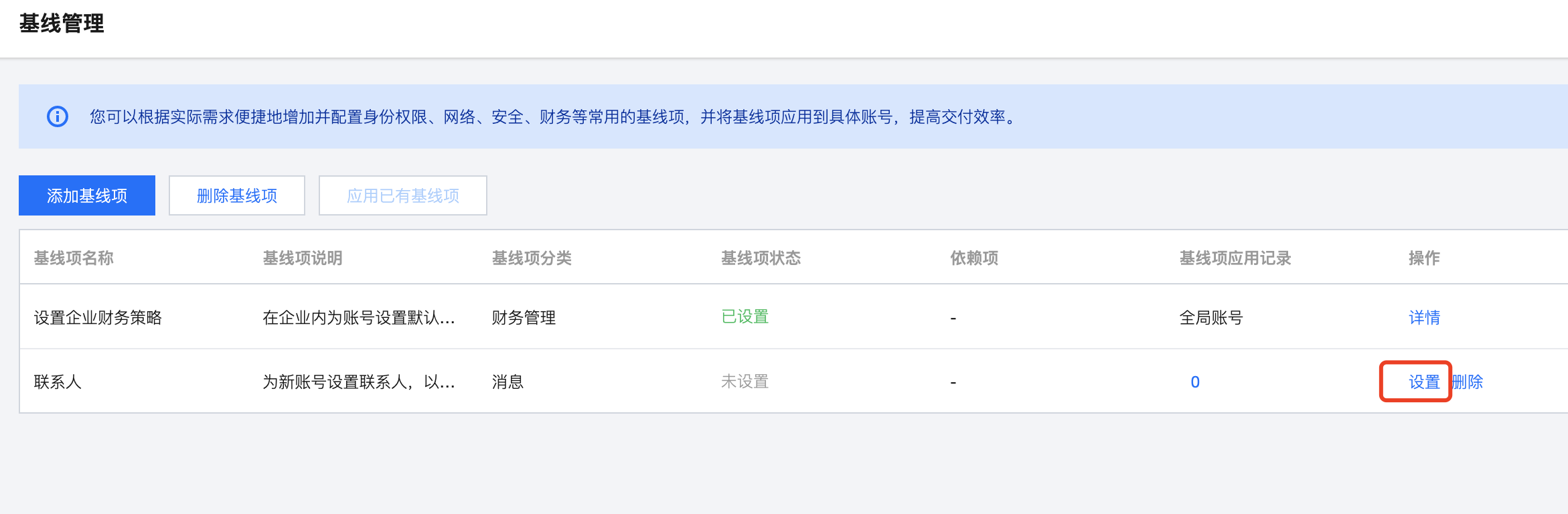 已添加联系人基线项,添加基线项操作请参见