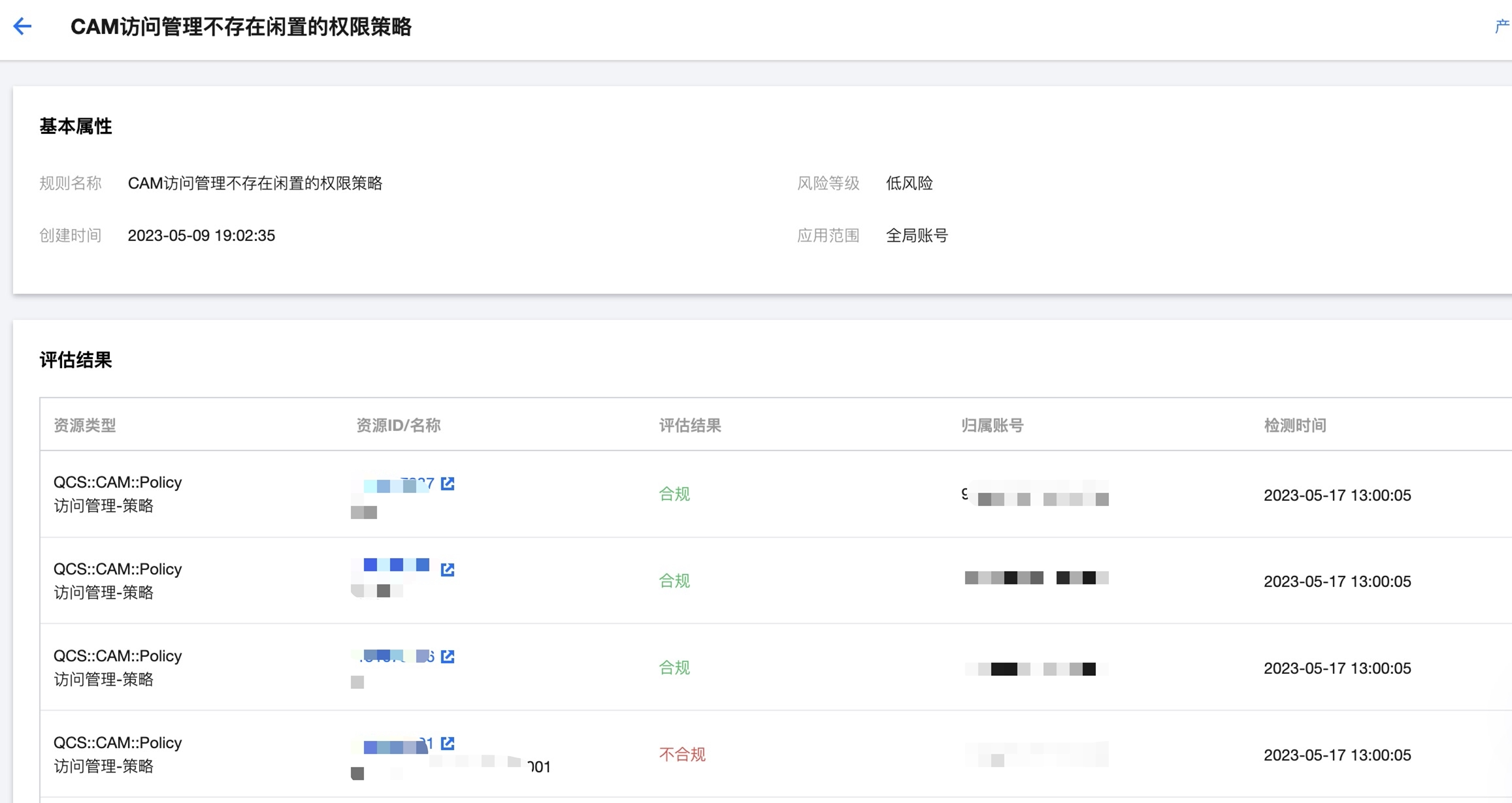 1. 在控制中心 > 防护规则 页面,单击相应规则名称,进入规则详情页面。 2. 在该页面浏览规则基本属性和评估结果。