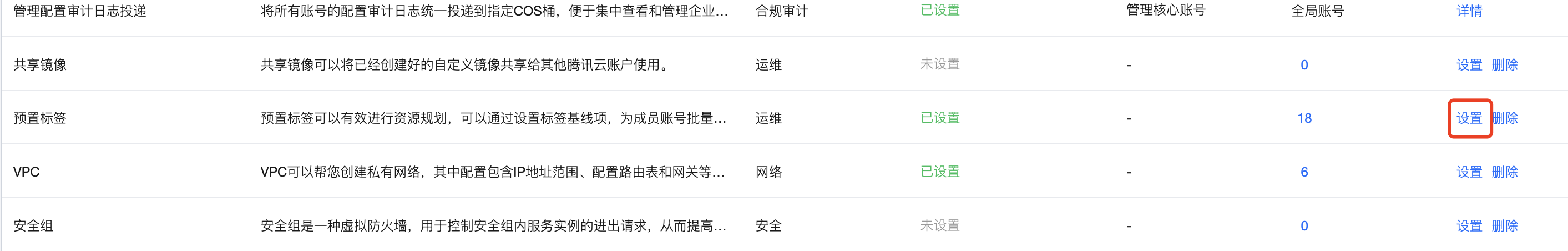 预置标签可以有效进行资源规划,可以通过设置标签基线项,为成员账号批量提供标签。