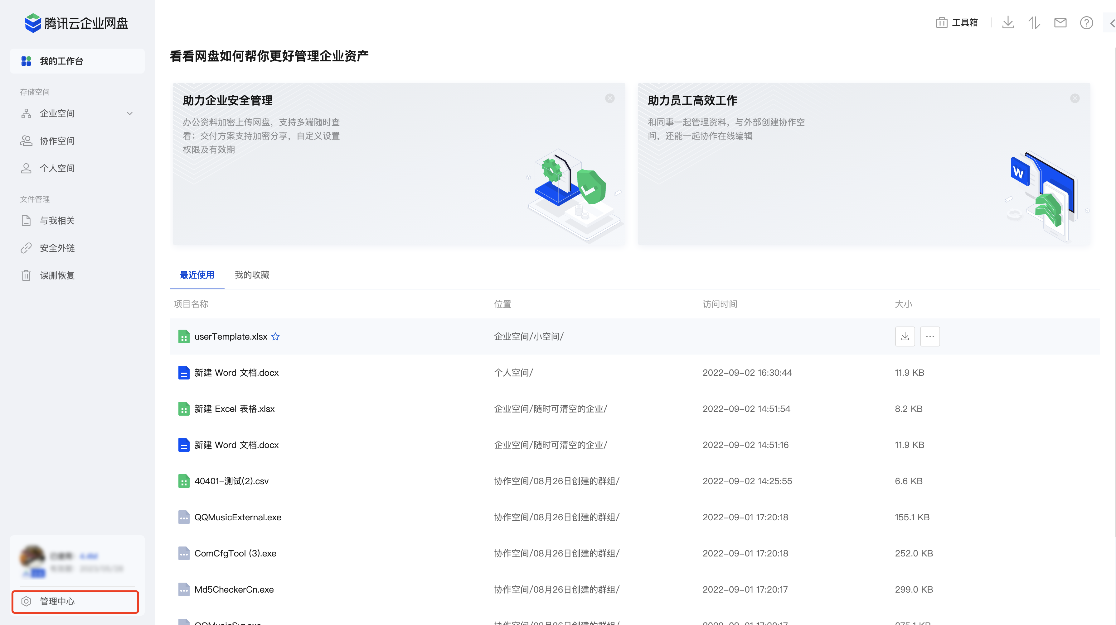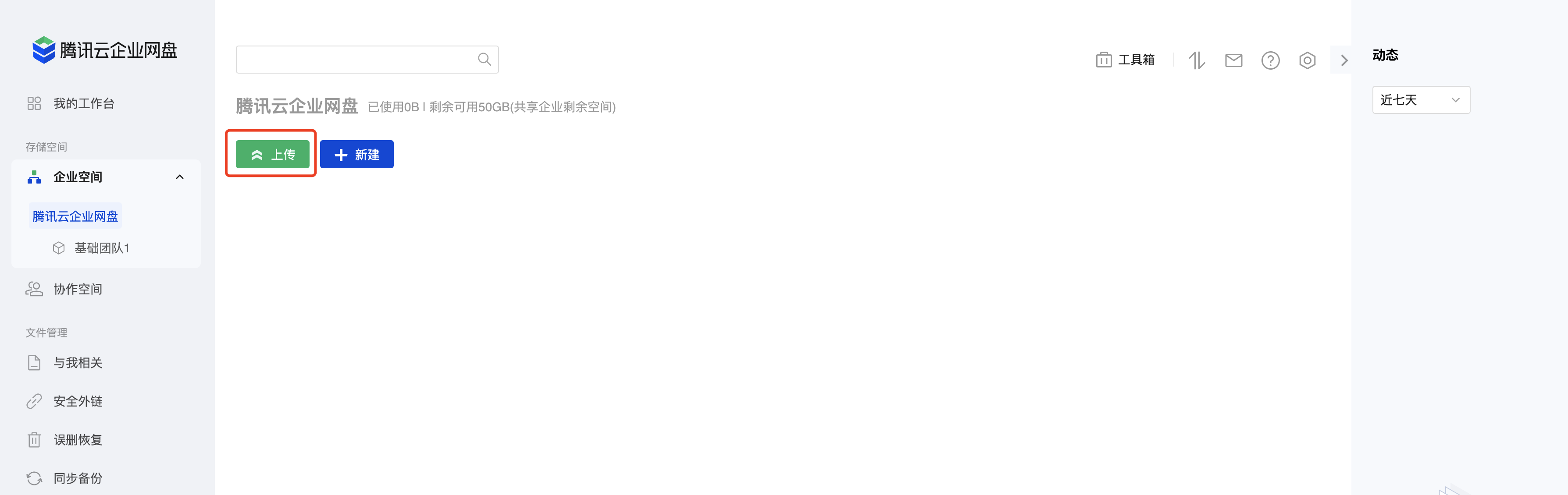 1. 在企业网盘界面中单击左侧个人空间或企业空间。