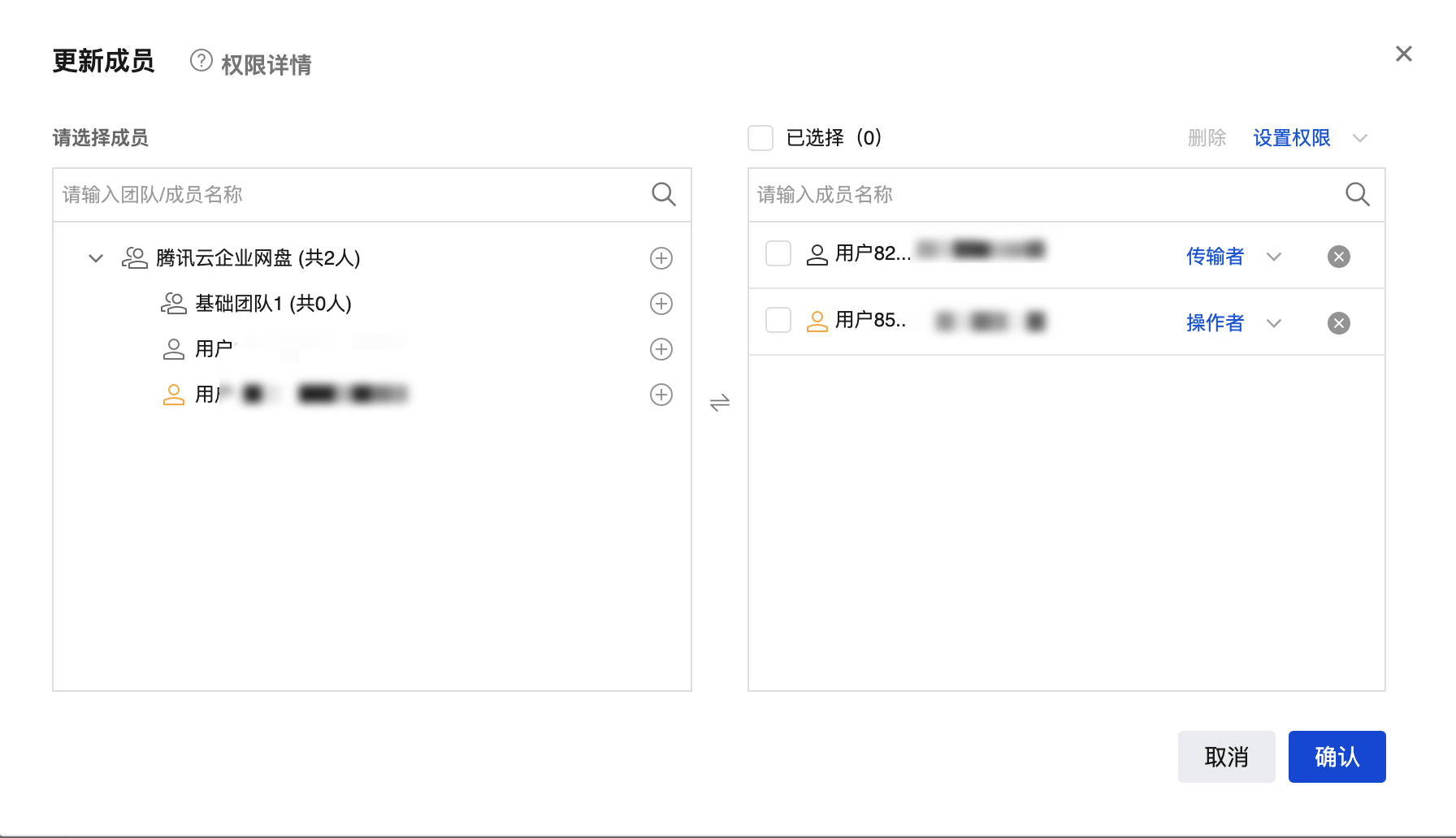 8. 选择您所需要添加的成员或团队,单击确认,即可完成添加。