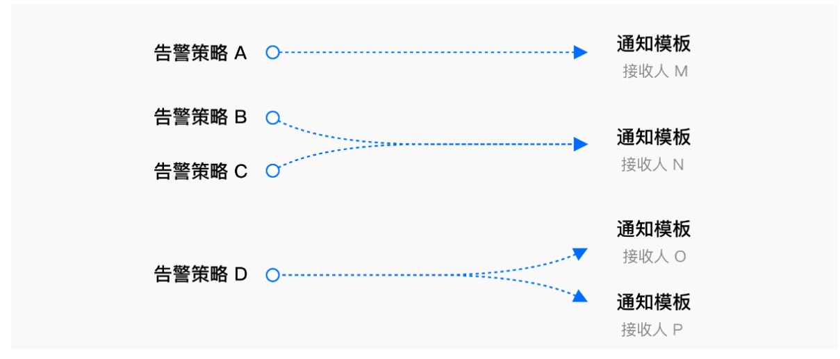 在腾讯云可观测平台中,一个告警策略可以绑定多个通知模板,一个通知模板也可供多个告警策略使用,可按需灵活配置。