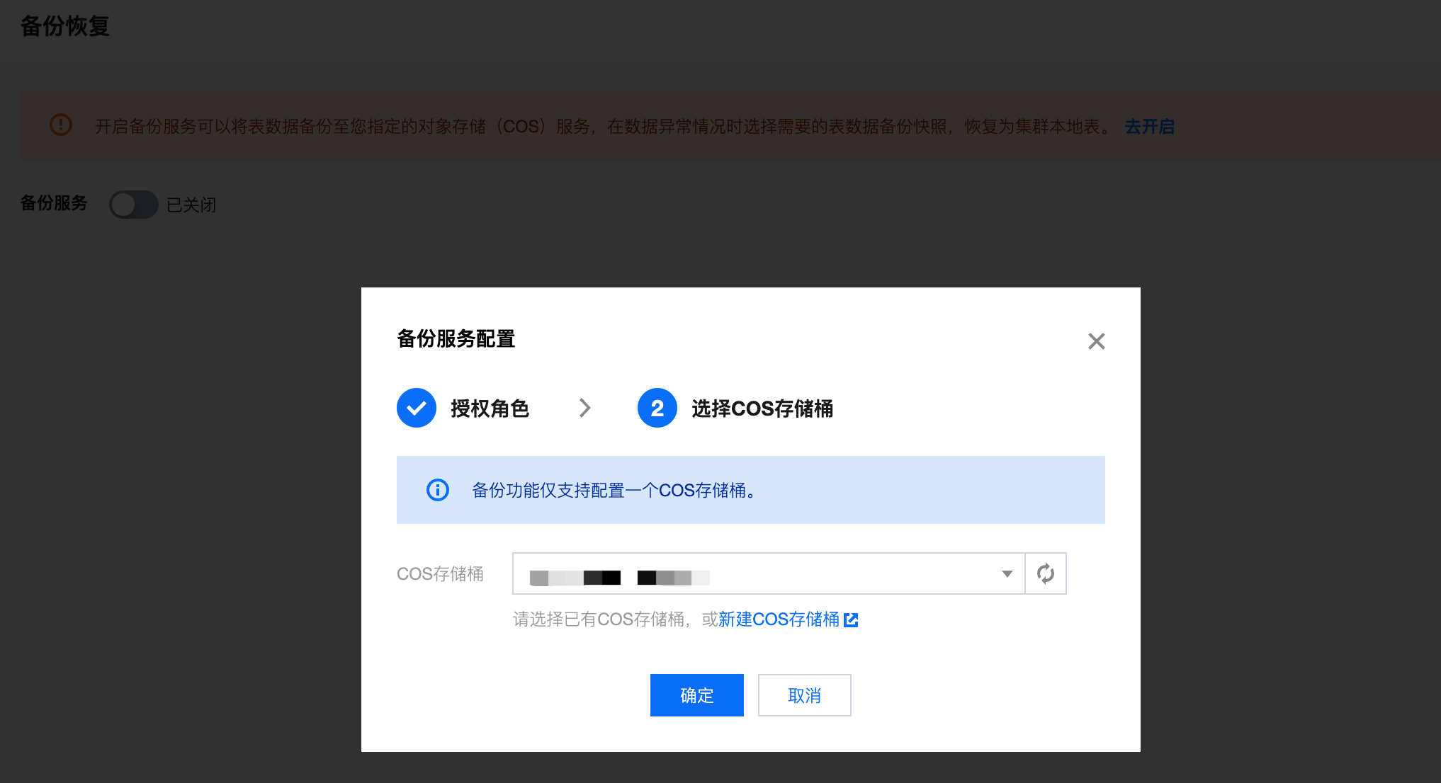 1. 进入 集群列表,单击需要备份的 集群 ID/名称。 2. 在集群管理页中,单击左侧 数据管理 > 备份恢复 进入备份恢复页。若备份服务尚未开启,应首先进行授权,并选择用于存储数据的 COS 桶。