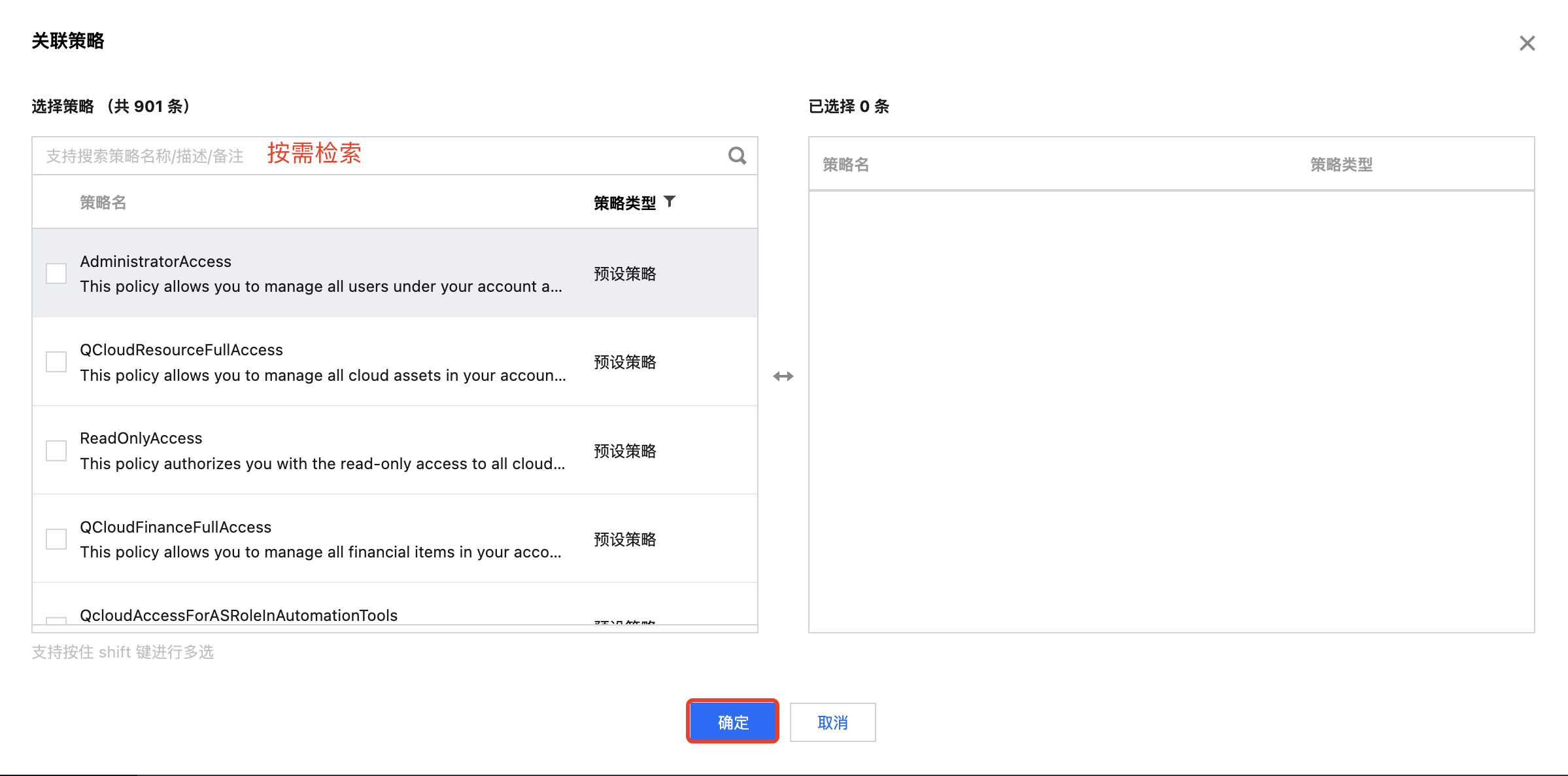 QcloudBDAIFullAccess | 大数据 AI 助手(BDAI)全读写访问权限 | 点击使用大数据 AI 助手的时候需要 |