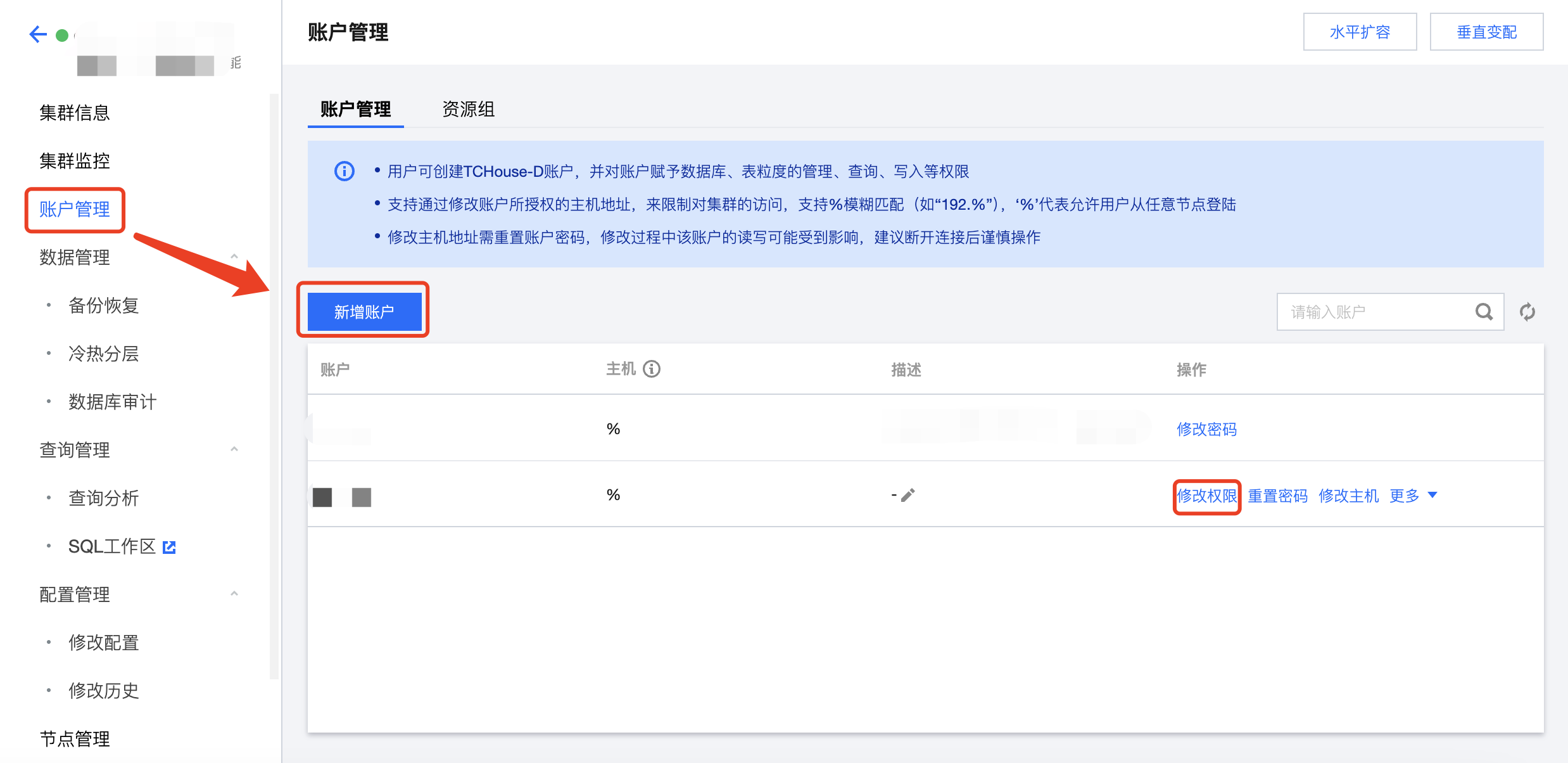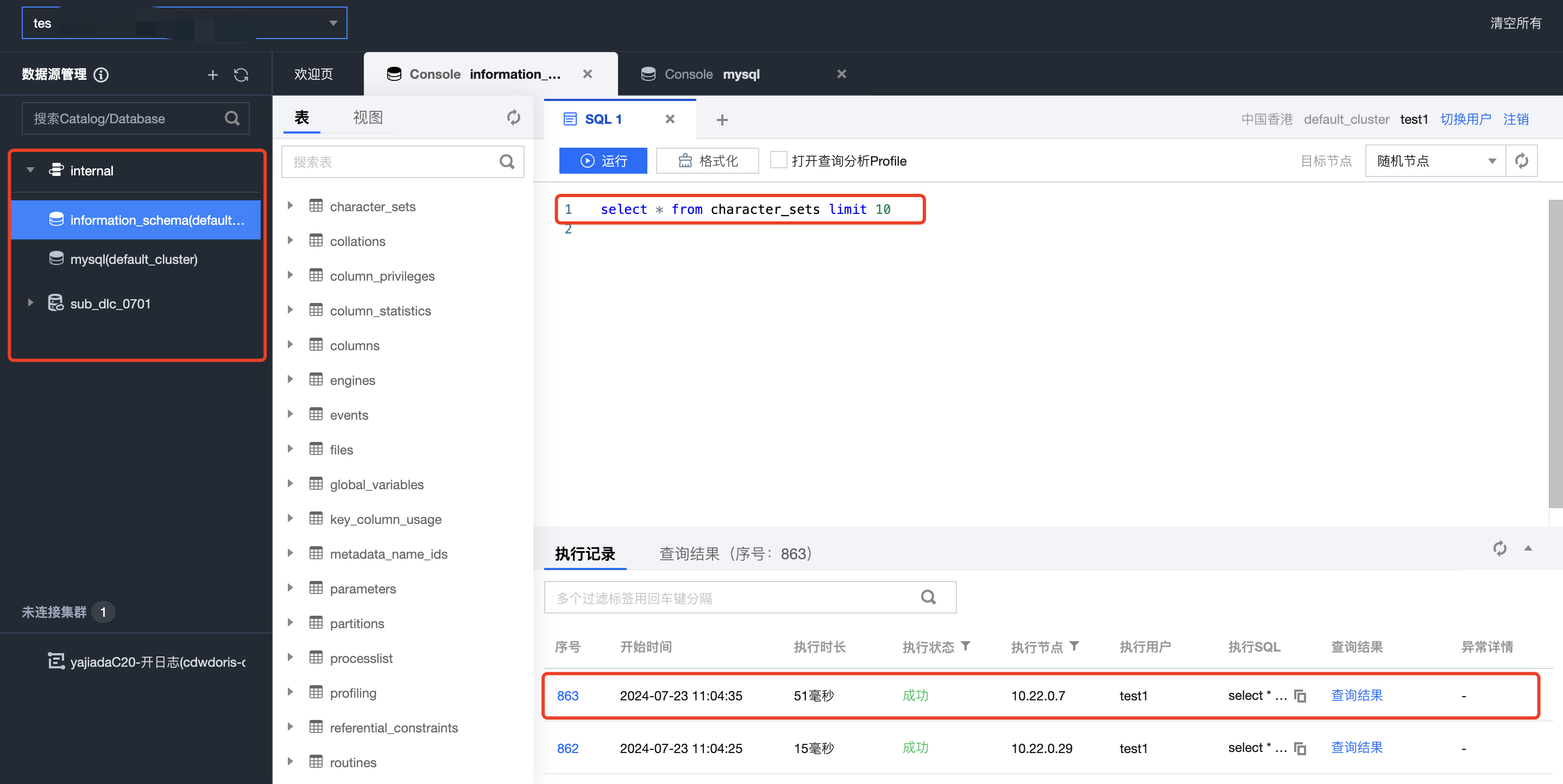 6. 使用腾讯云数据仓库 TChouse-D 的用户查询 DLC 前,需要先前往腾讯云数据仓库 TChouse-D 控制台的 账户管理 授予用户 DLC 库表的查询权限。 7. 完成授权后,即可通过 MySQL Client 客户端 查询加速 DLC,或点击 SQL 工作区 快捷链接进入 SQL 工作区,通过腾讯云数据仓库 TCHouse-D 的用户查询加速 DLC。 8. 在SQL工作区中,您可在页面左侧查看有权限的库表,并在 SQL 编译框按需进行查询。