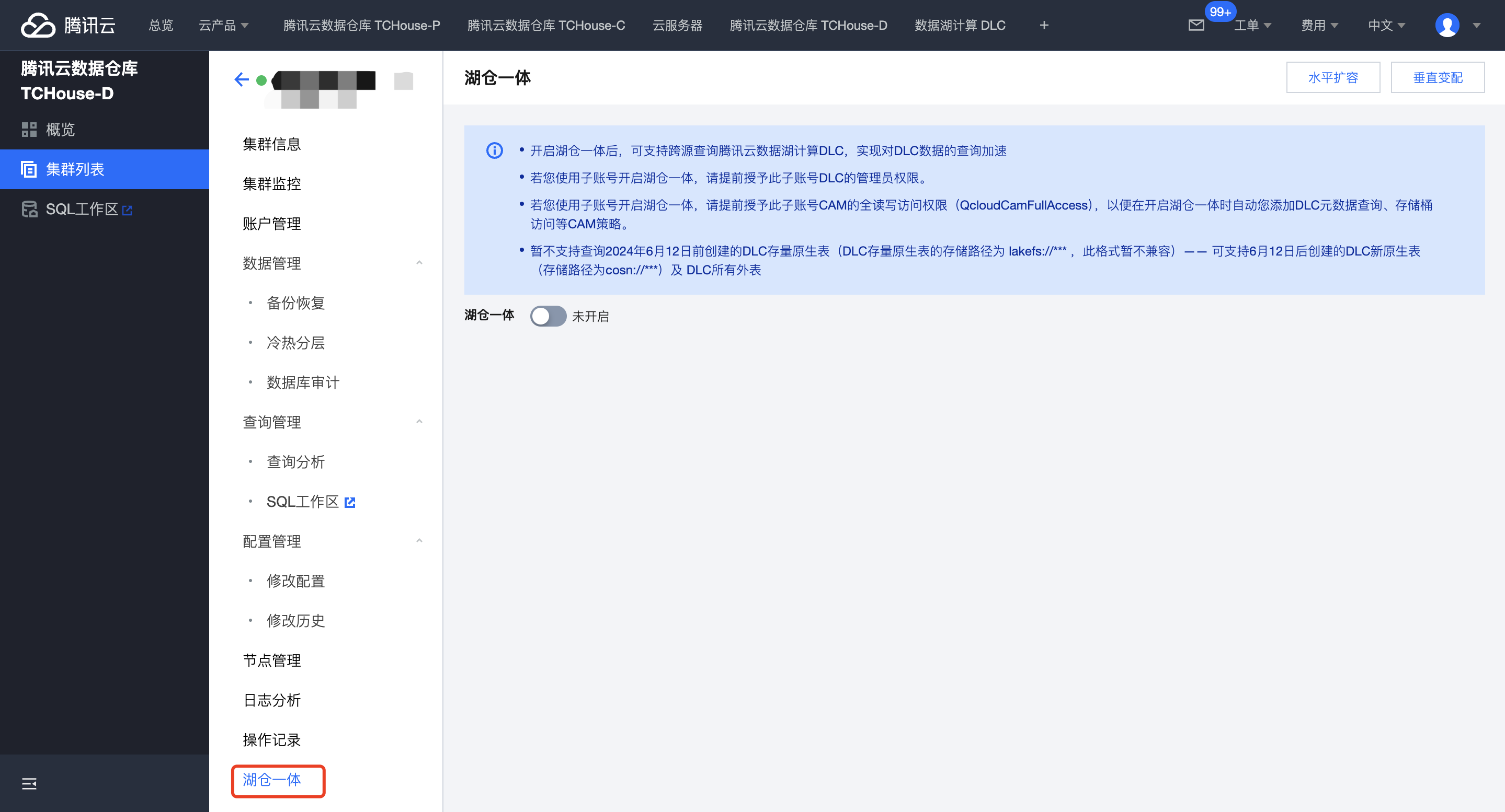 4. 点击湖仓一体开关后,进入配置页面。