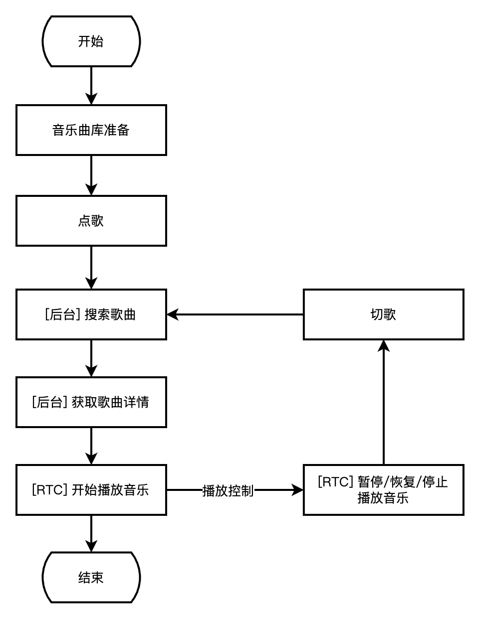 - (void)playBmgExample {// 合唱未开始if (self.delayMs > 0) {// 开始预加载音乐[self preloadMusicWithStartTimeMS:0];// 延迟 delayMs 后开始播放音乐[self startPlayMusicWithStartTimeMS:0];} else if (labs(self.delayMs) < self.musicDuration) {// 合唱进行中// 开始播放时间: 时间差值绝对值 + 预加载延迟(例如400ms)NSInteger startTimeMS = labs(self.delayMs) + 400;// 开始预加载音乐[self preloadMusicWithStartTimeMS:startTimeMS];// 预加载延迟(例如400ms)后开始播放音乐[self startPlayMusicWithStartTimeMS:startTimeMS];} else {// 合唱已结束// 不允许加入合唱}}// 预加载音乐- (void)preloadMusicWithStartTimeMS:(NSInteger)startTimeMS {// musicId: 从合唱信令获取;musicUrl: 对应的音乐资源地址TXAudioMusicParam *musicParam = [[TXAudioMusicParam alloc] init];musicParam.ID = self.musicId;musicParam.path = self.musicUrl;// 仅本地播放音乐musicParam.publish = NO;musicParam.startTimeMS = startTimeMS;[self.audioEffectManager preloadMusic:musicParam onProgress:nil onError:nil];}// 开始播放音乐- (void)startPlayMusicWithStartTimeMS:(NSInteger)startTimeMS {// musicId: 从合唱信令获取;musicUrl: 对应的音乐资源地址TXAudioMusicParam *musicParam = [[TXAudioMusicParam alloc] init];musicParam.ID = self.musicId;musicParam.path = self.musicUrl;// 仅本地播放音乐musicParam.publish = NO;musicParam.startTimeMS = startTimeMS;[self.audioEffectManager startPlayMusic:musicParam onStart:nil onProgress:nil onComplete:nil];}