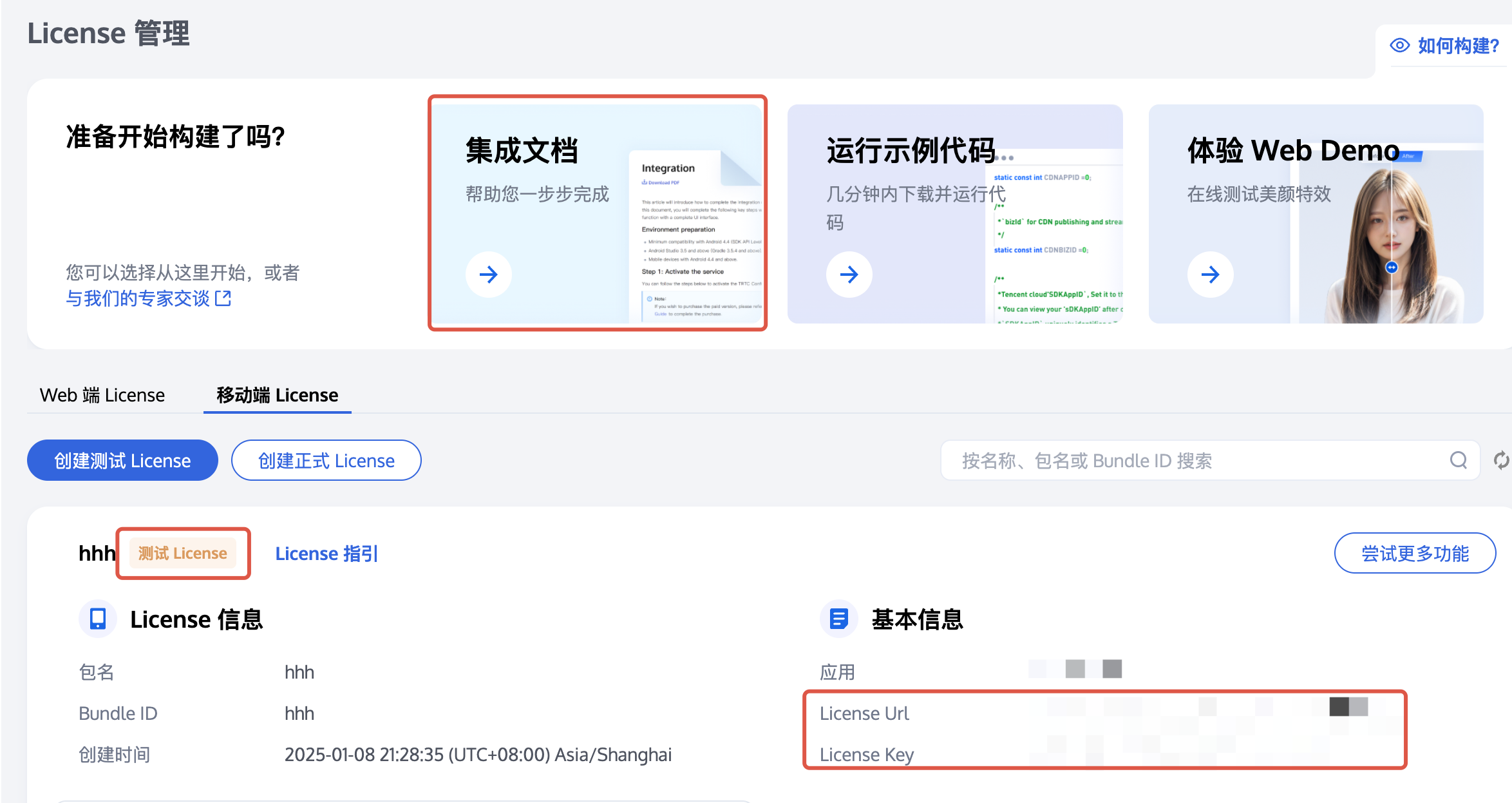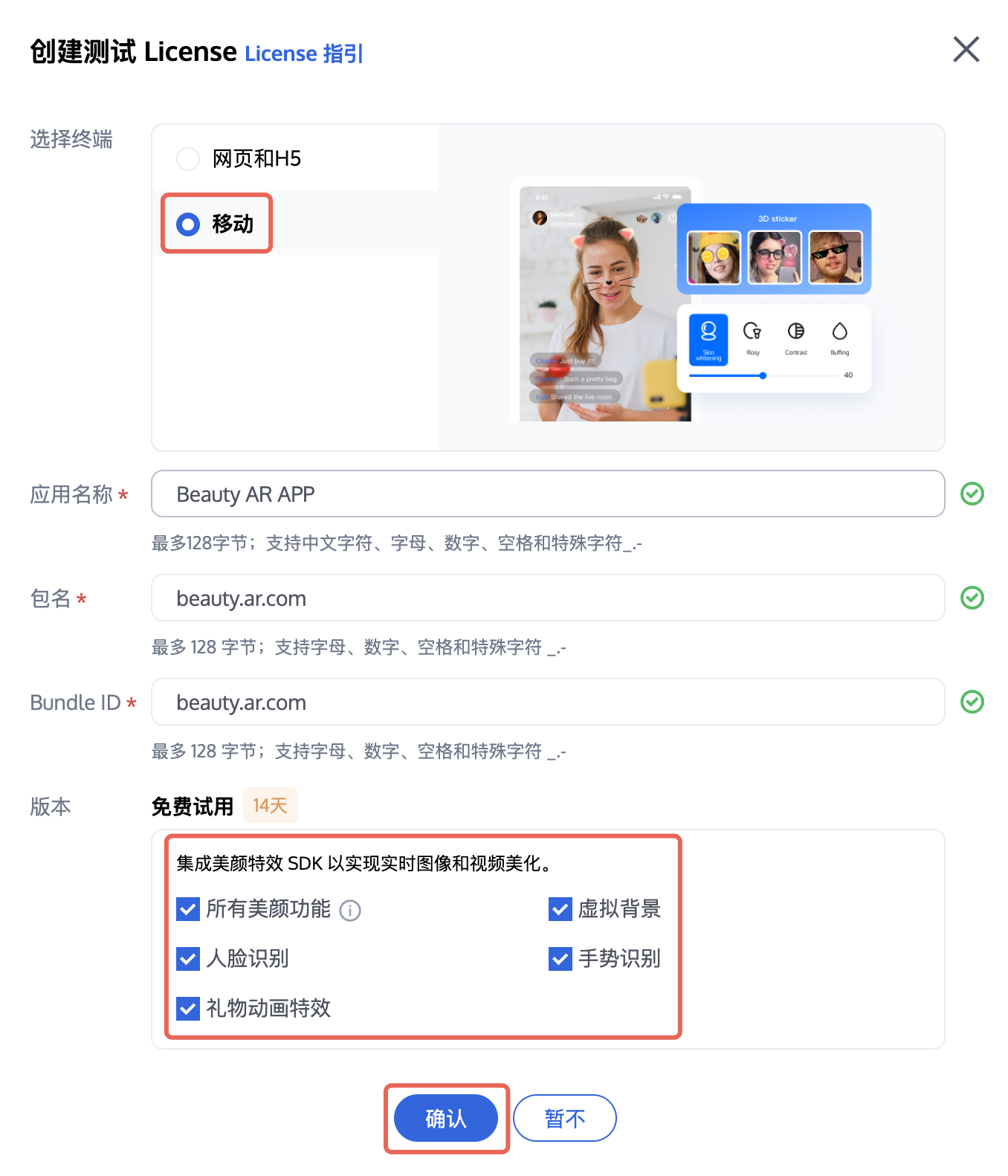 App Name、Package Name 和 Bundle ID,选择播放器高级版,单击创建。