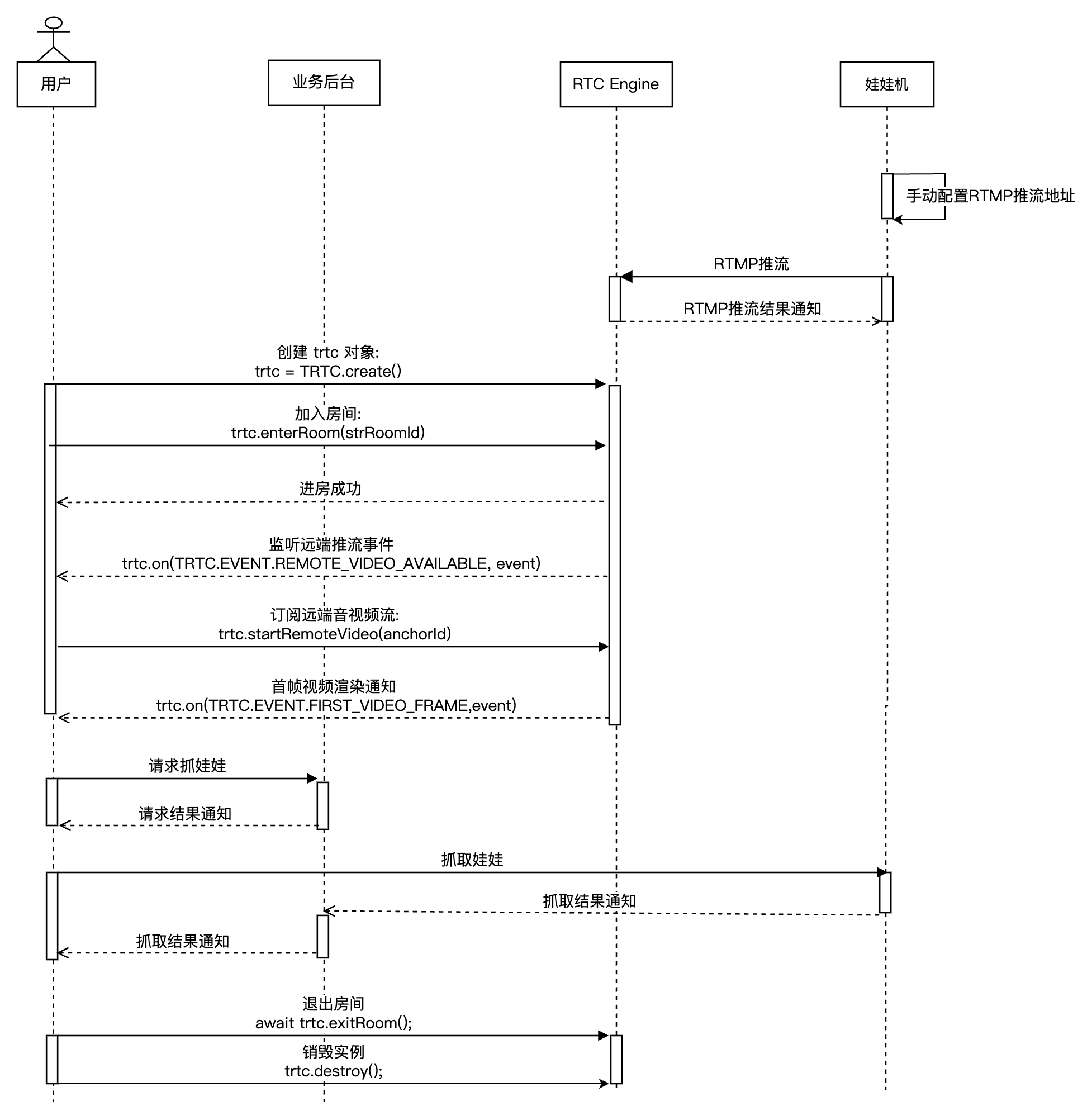 await trtc.exitRoom();// 退房成功后,若后续无需使用 rtc engine 实例,则可以调用 trtc.destroy 方法销毁实例,及时释放相关资源。// 销毁后的 rtc engine 实例无法继续使用,需要重新创建新的实例。trtc.destroy();