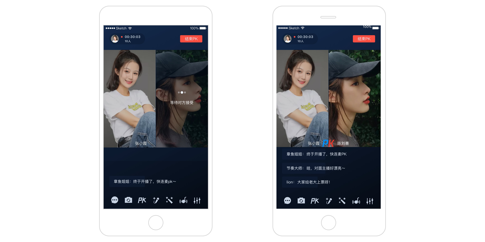 两人 PK 调用逻辑简单 | 多人 PK 调用逻辑复杂 | 单个主播最多和其他房间的 9 个主播跨房 PK | 两个房间,单主播(双人)跨房 PK | |