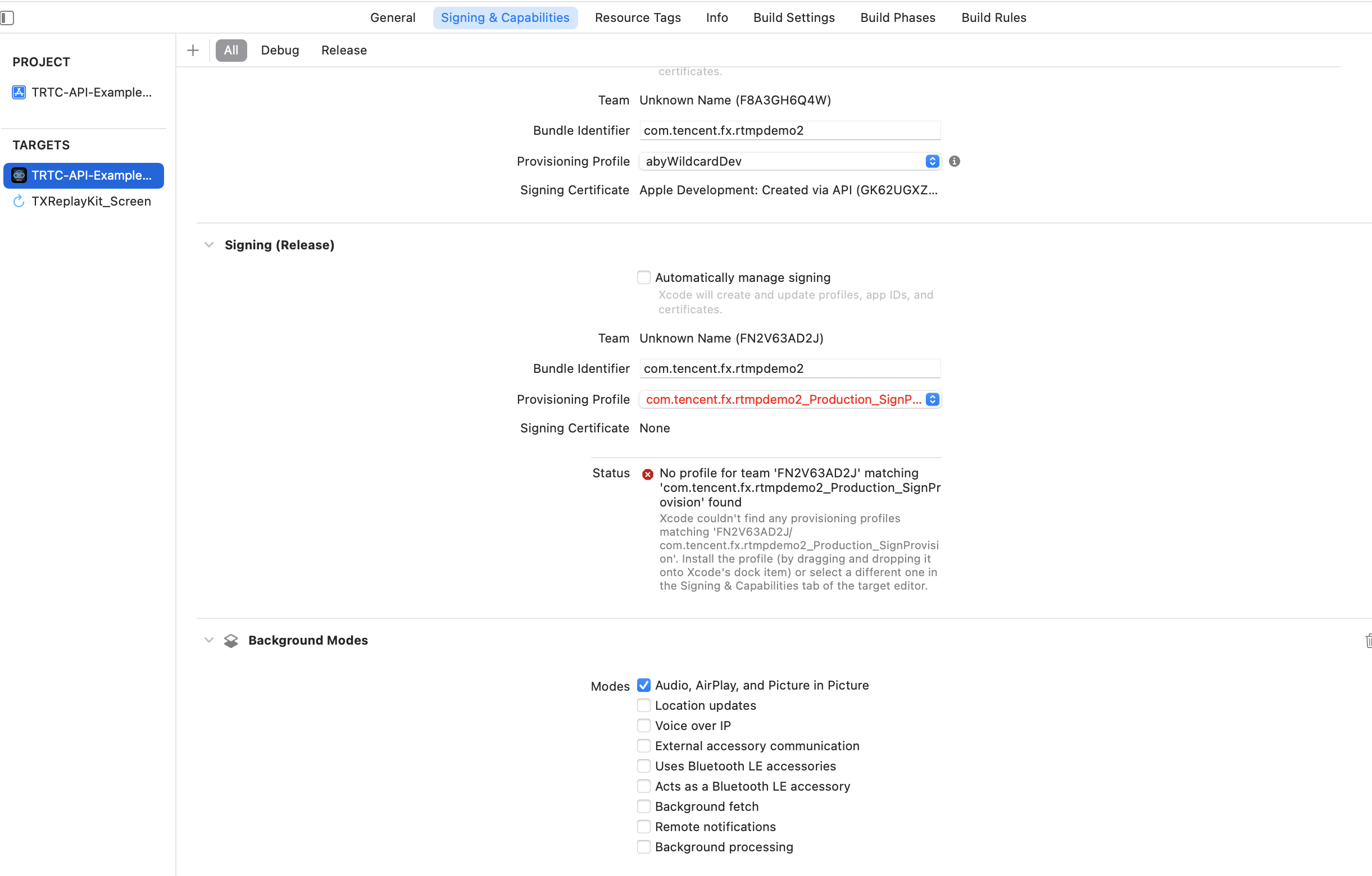 ERR_TRTC_USER_SIG_CHECK_FAILED | -100018 | UserSig 校验失败,请检查参数 TRTCParams.userSig 是否填写正确或已经过期。 |