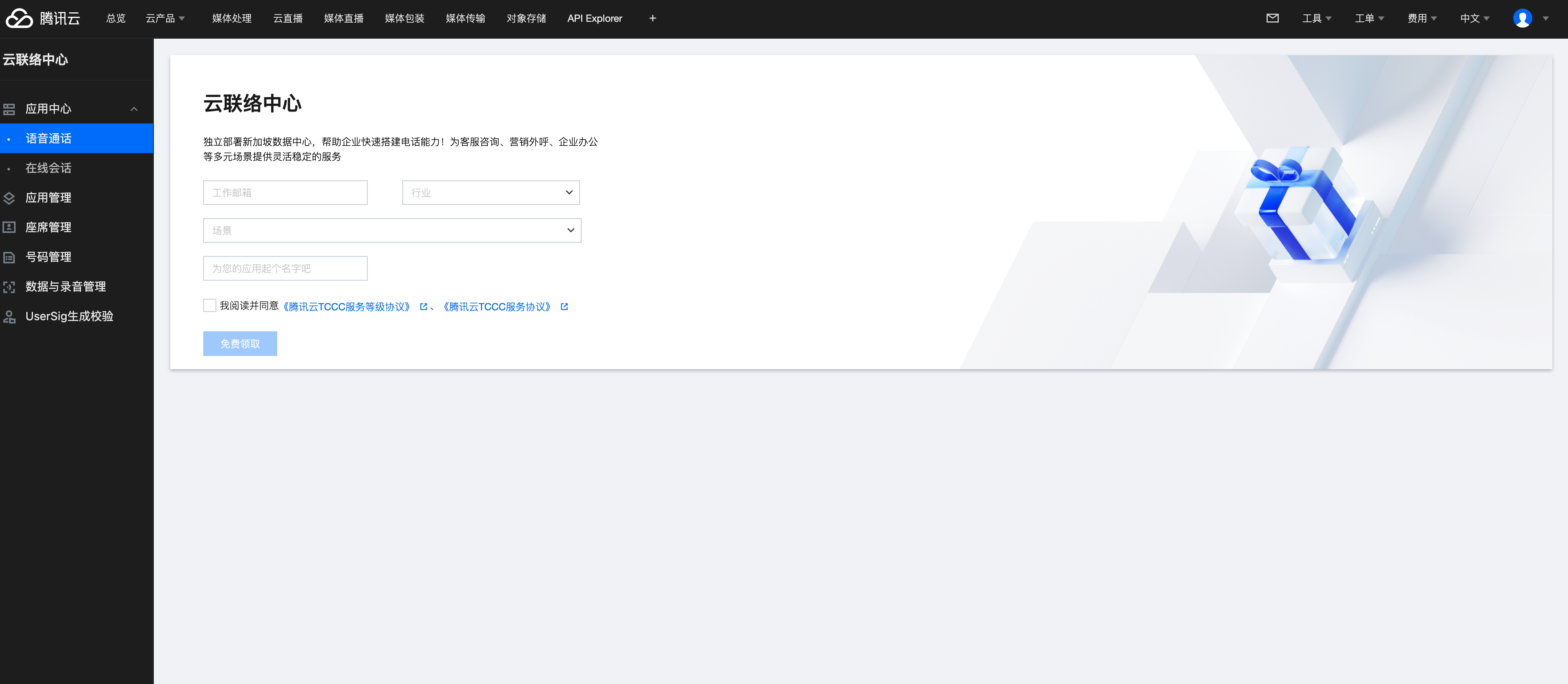 腾讯云控制台:为您提供应用级别管理(含:应用创建、 自有号码对接、 座席套餐购买、 录音 COS 桶转存及数据推送配置)。