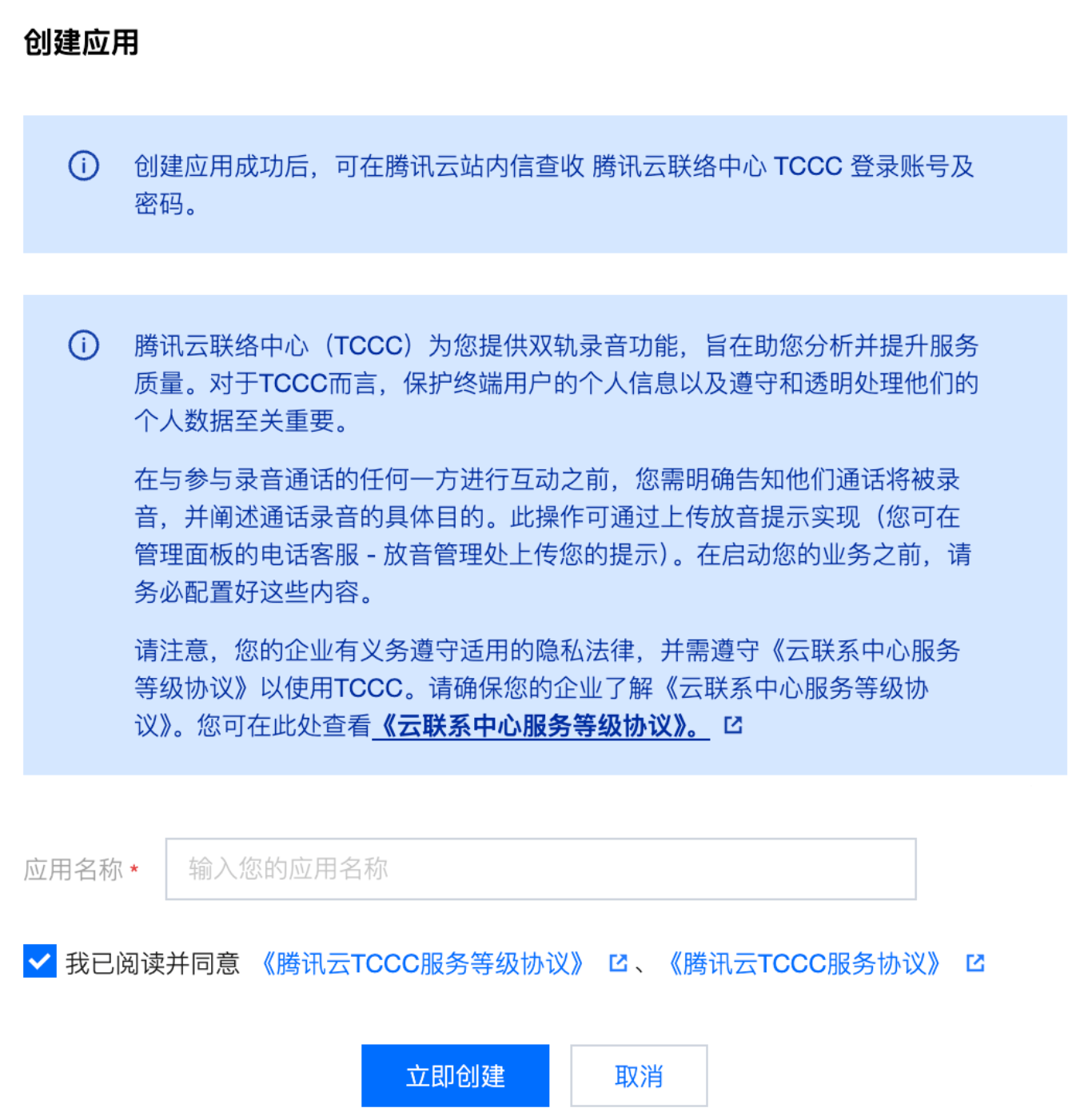 若您非首次创建应用可在腾讯云联络中心 TCCC 控制台新增应用。