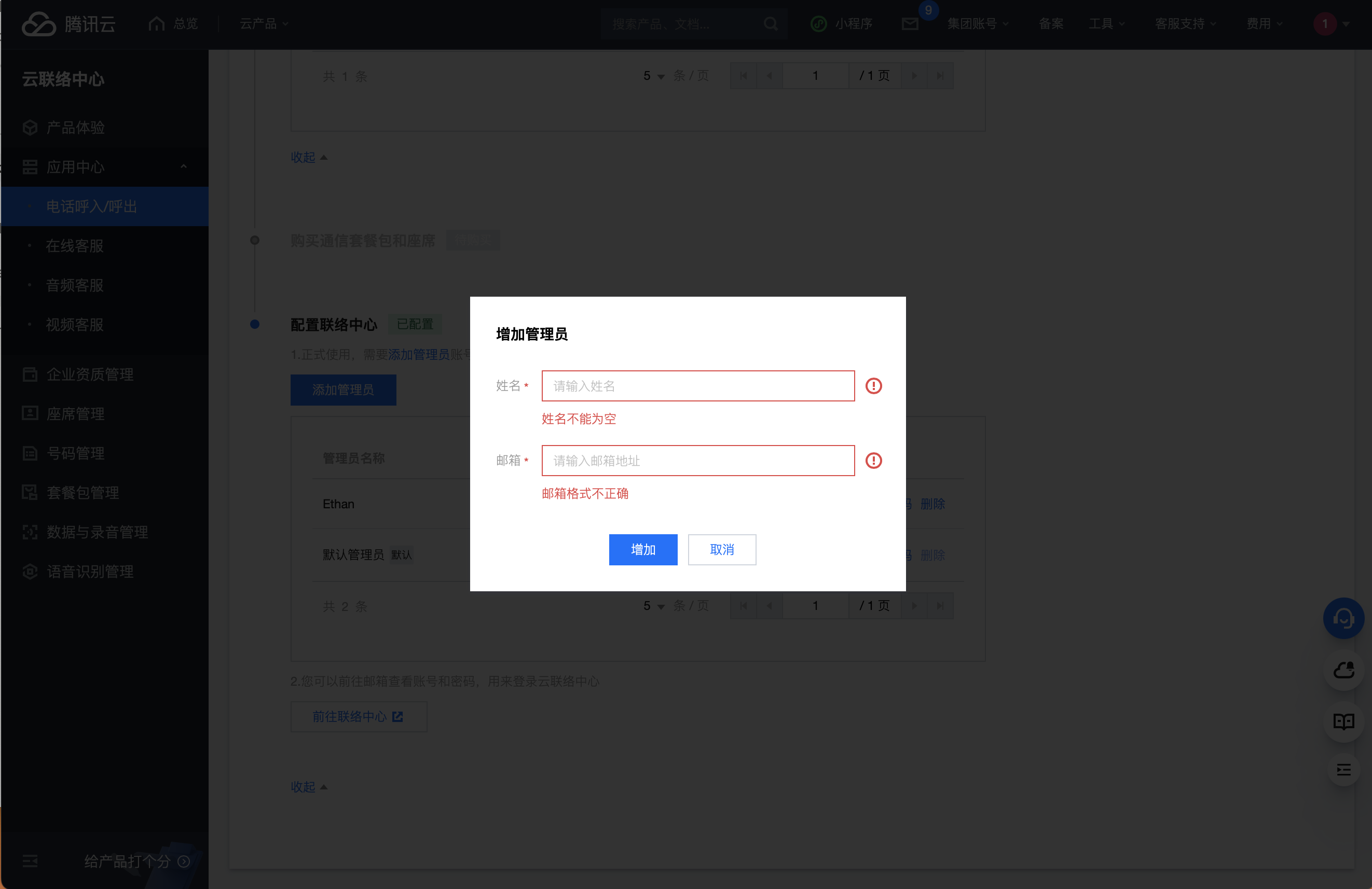 腾讯云控制台:为您提供应用级别管理(含:应用创建、 自有号码对接、 座席套餐购买、 录音 COS 桶转存及数据推送配置)。
