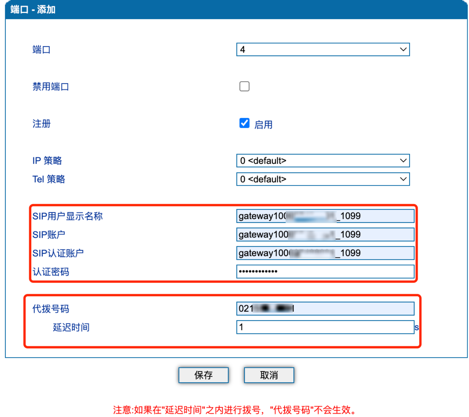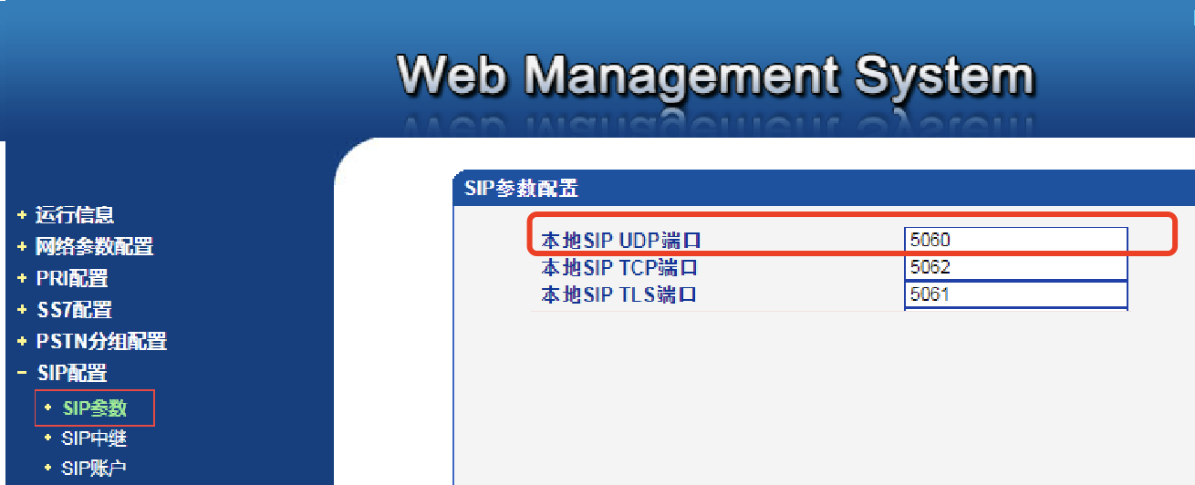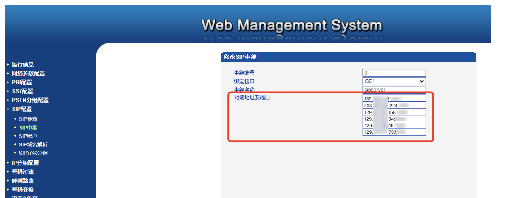 您可在您的网关后台查找 SIP 网关 IP 和 SIP UDP 端口,例如: