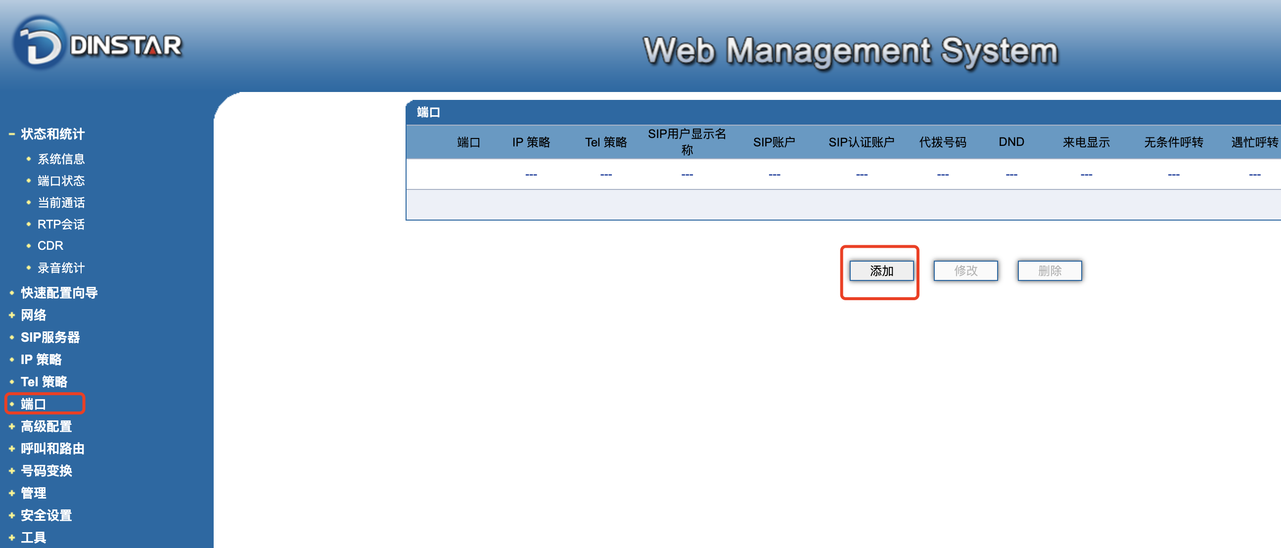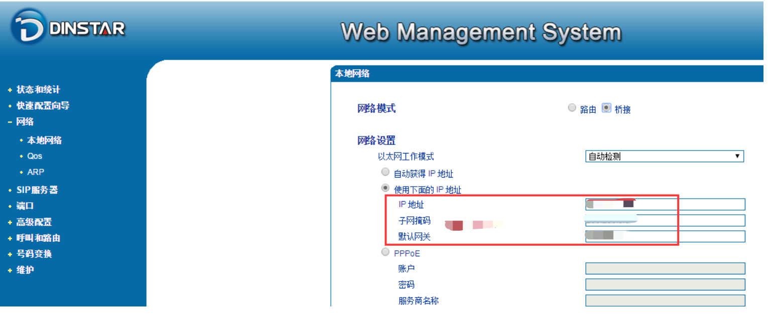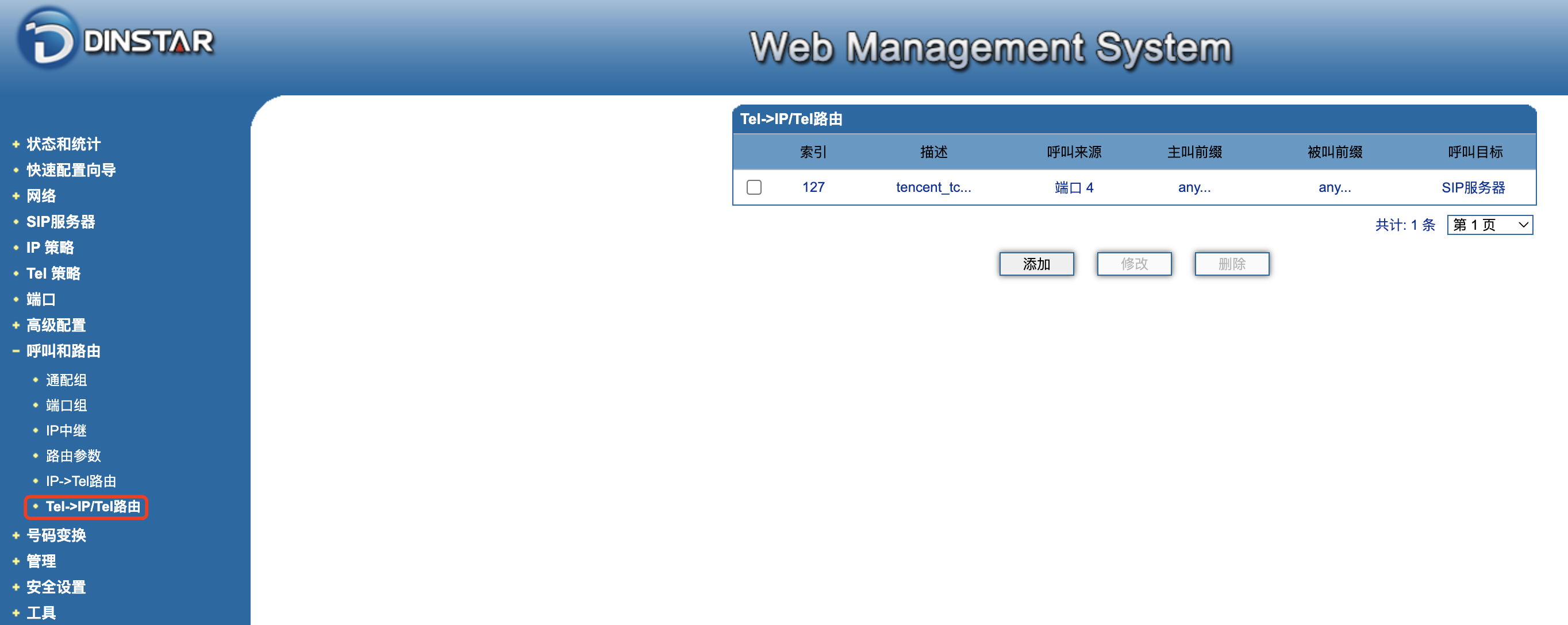 您可在您的网关后台查找 SIP 网关 IP 和 SIP UDP 端口,例如: