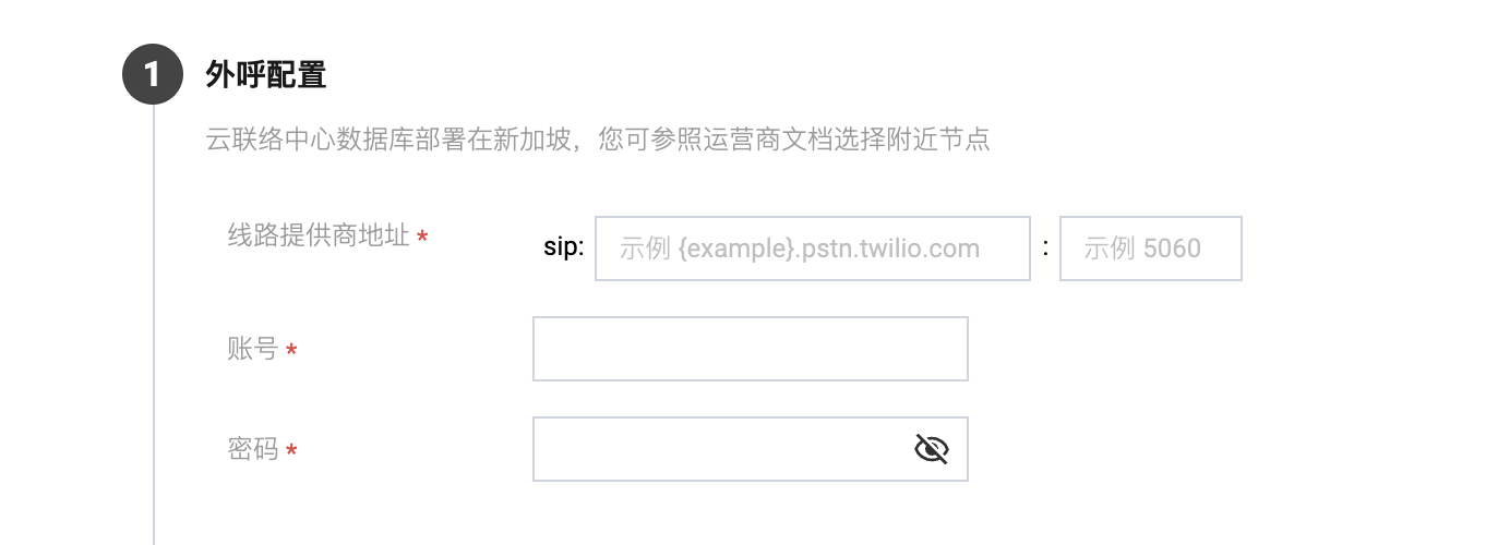 该方法适合您在 Twillio, Vonage 等运营商处购买号码后,将运营商提供地址填写到云联络中心平台。