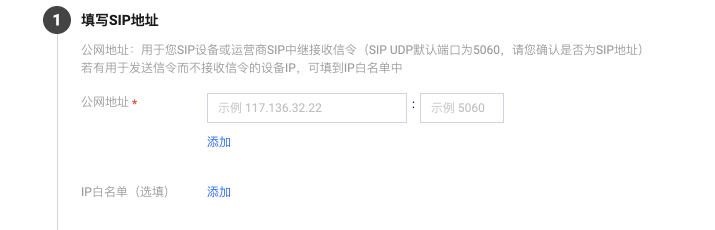 填写公网地址,用于您的 SIP 设备或者运营商的 SIP 中继接收 SIP 信令。(SIP UDP 的默认端口默认为5060,请确认您填写的地址是否为 SIP 地址)