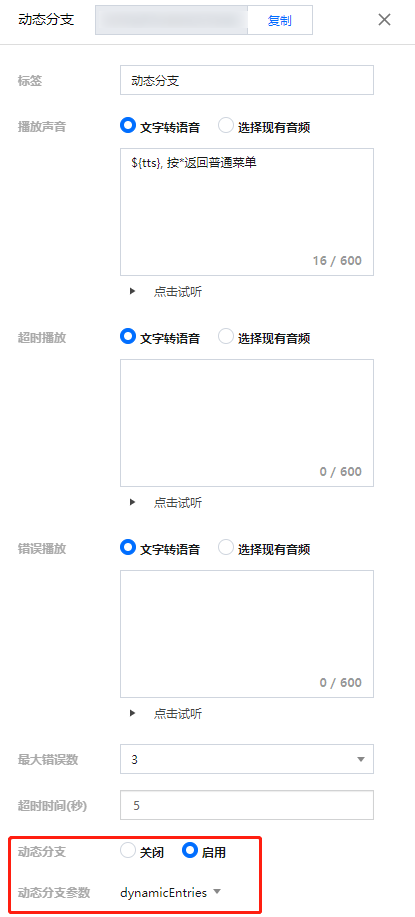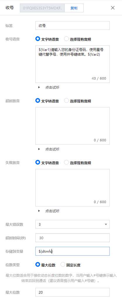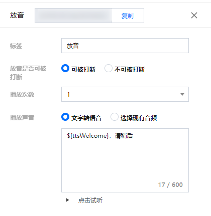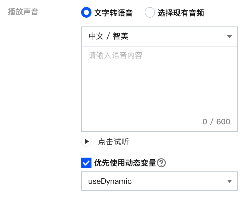 ${variable} 的形式,支持系统播报动态传入的第三方参数。