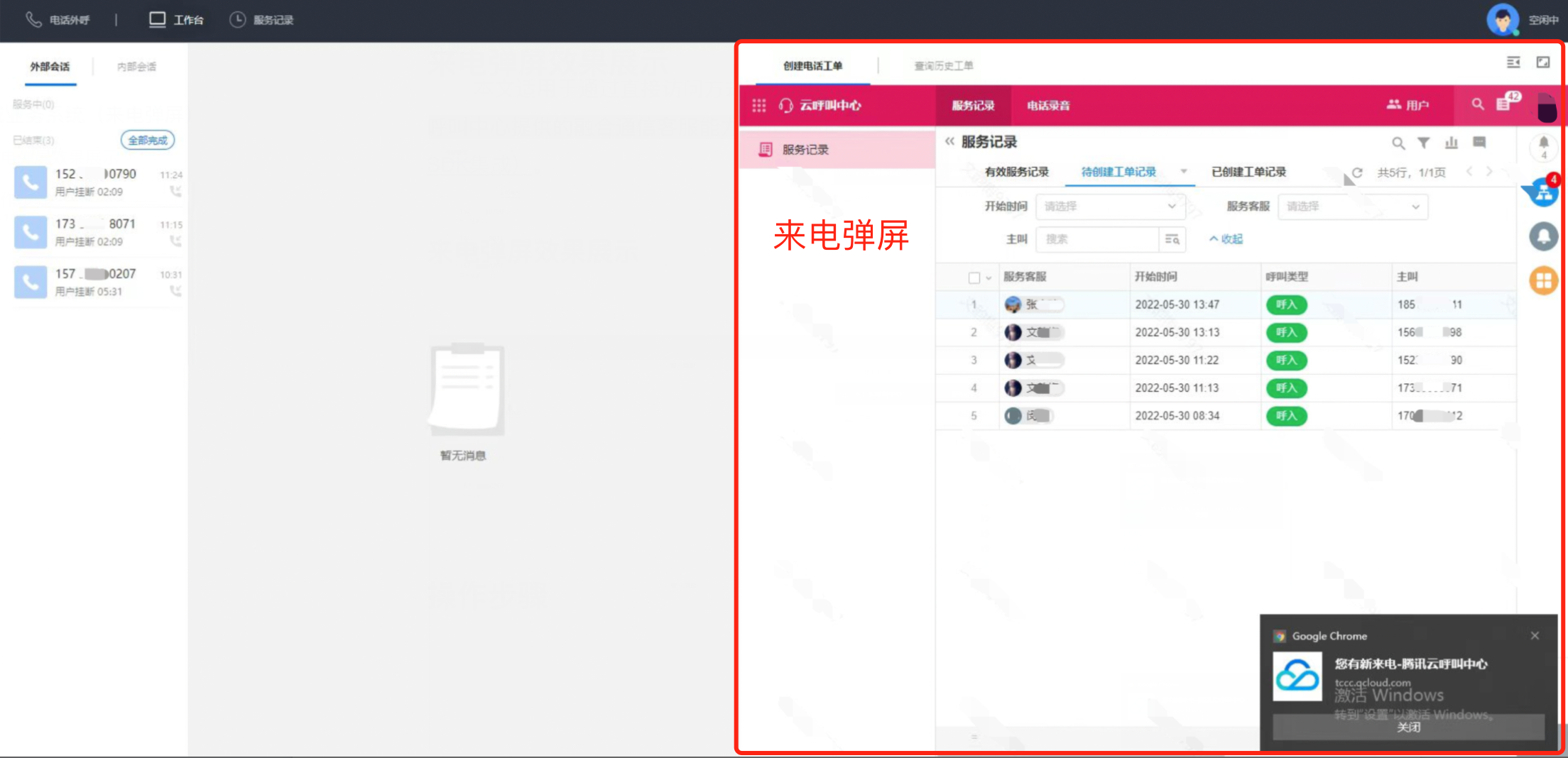 https://www.qq.com,那么每次呼入时,我们请求的 URL 为:https://www.qq.com#?mobile=18888888888&type=phone
