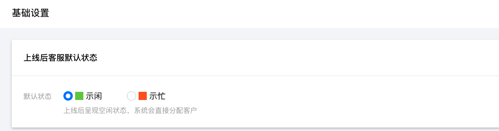 示闲:座席上线后呈现空闲状态,系统会直接分配用户。