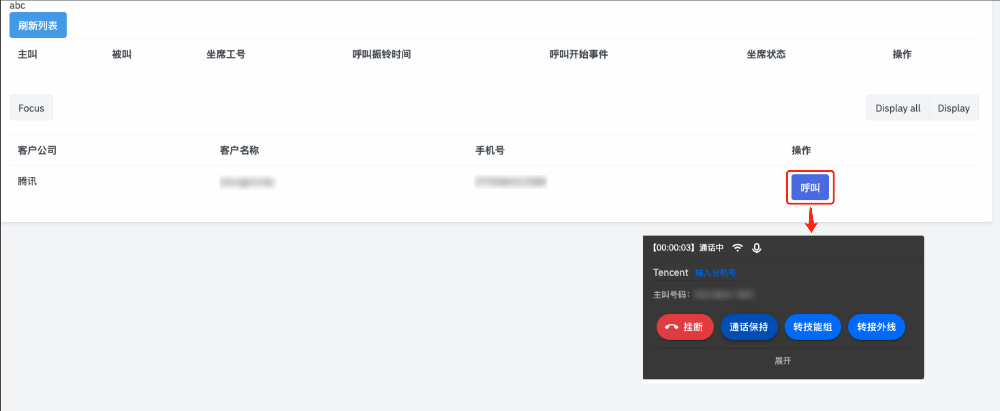 云联络中心已经提供默认通话工具条 UI 样式,集成后坐席可直接使用。企业也可隐藏默认样式并调用相关接口自定义 UI 开发。