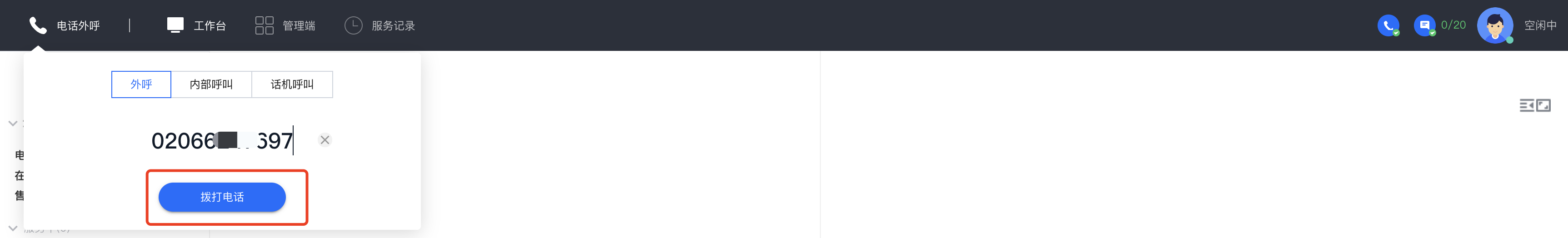 座席人员可在座席工作台提供的拨号盘中输入需要外呼的号码,单击