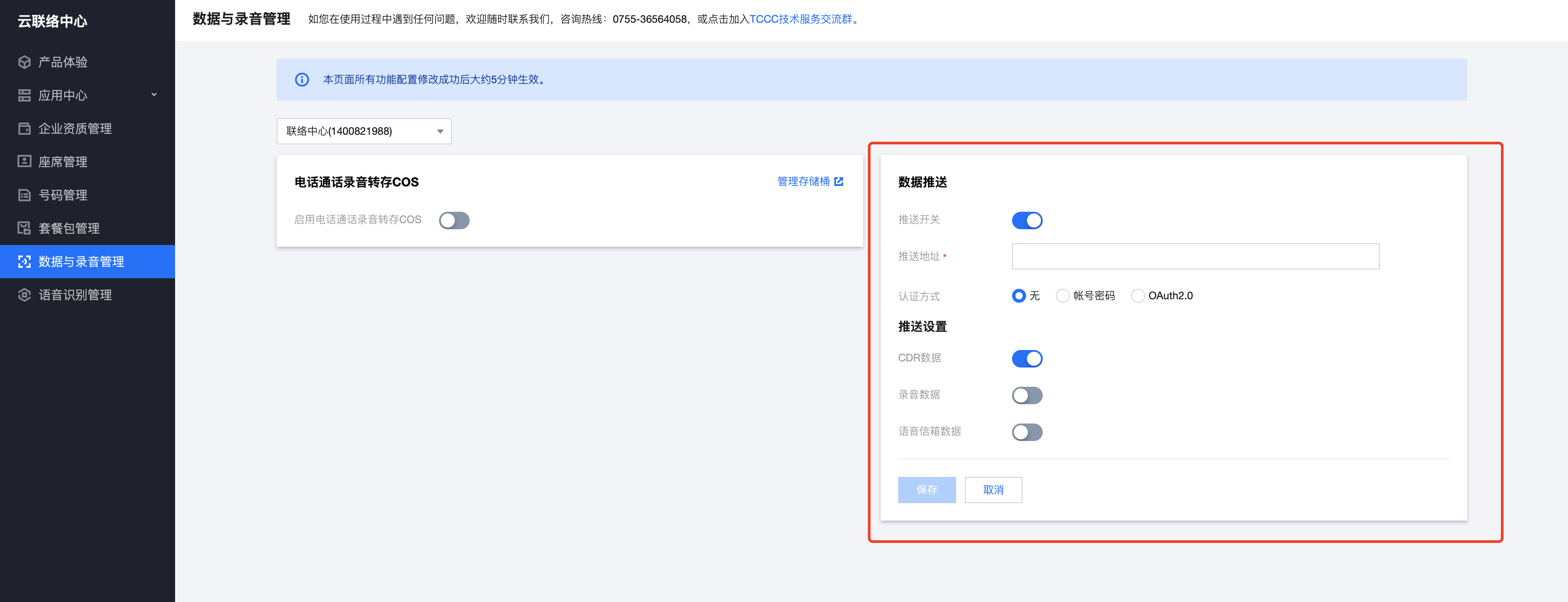 腾讯云联络中心 TCCC 支持将通话录音推送到企业设置的指定的推送地址,录音推送功能启用步骤如下。