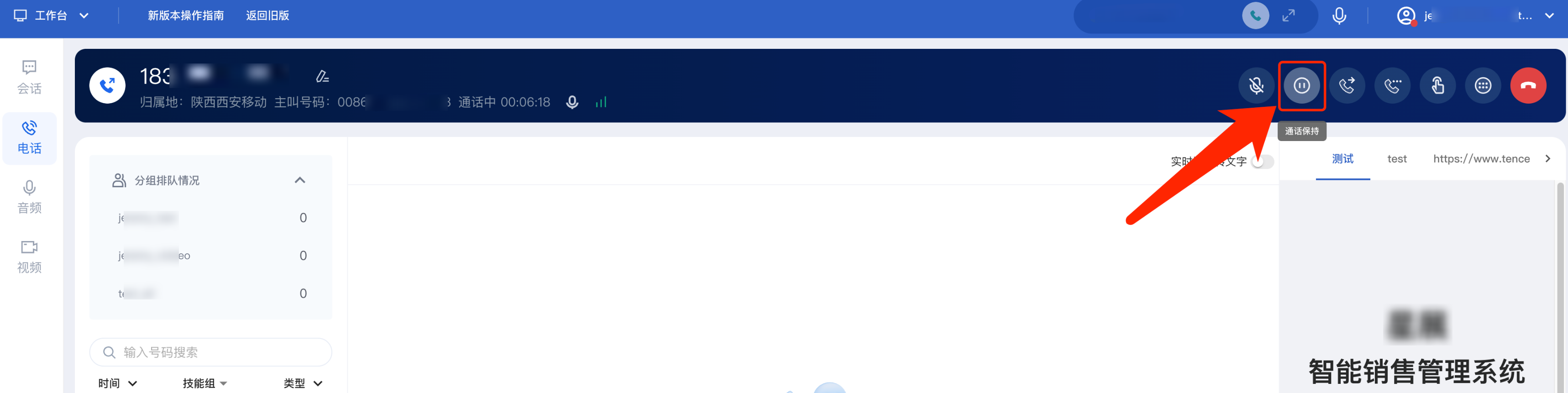 图标按钮可以给用户播放默认通话保持音,等员工回来后单击取消保持返回通话。通话保持过程中,员工可以听到用户的声音。