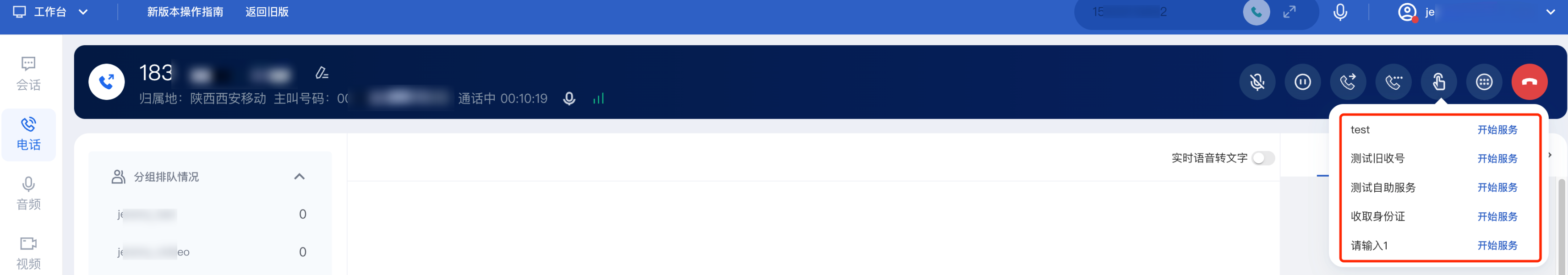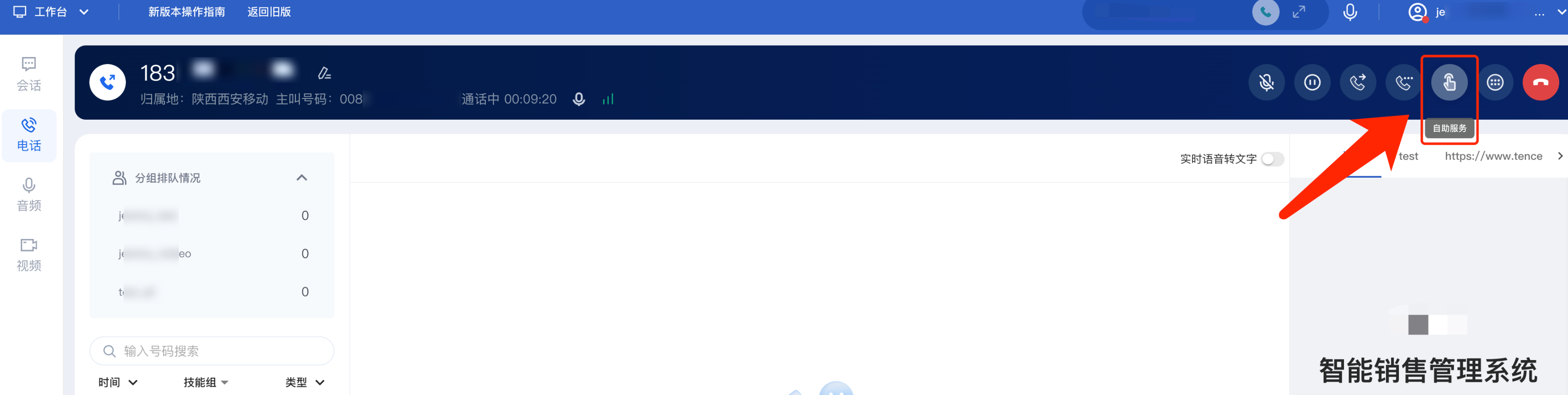 员工与用户在通话过程中,员工可以直接发起管理员创建的自助服务流程(例如:自动播报一段产品介绍,请用户按键确认)。