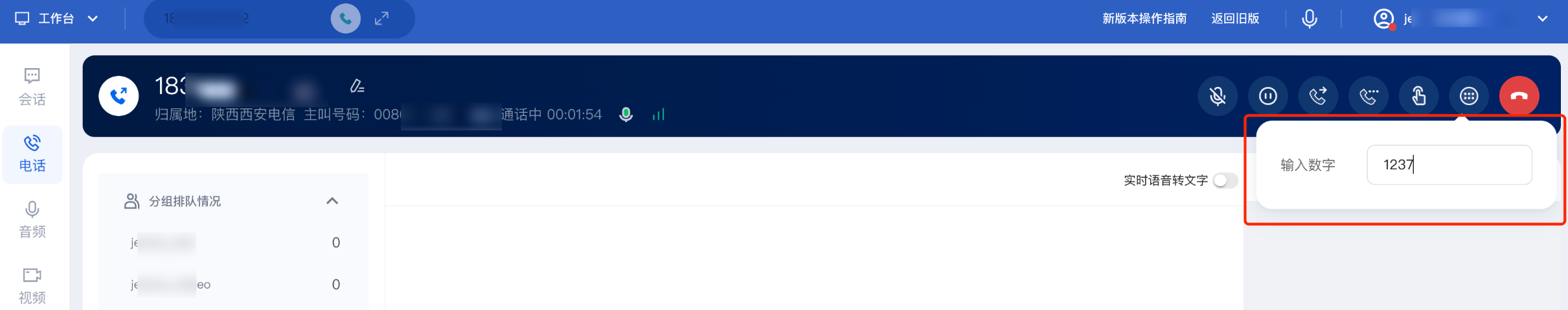 员工输入需要转接的分机号,输入完毕后系统将自动发送分机号进行转接。