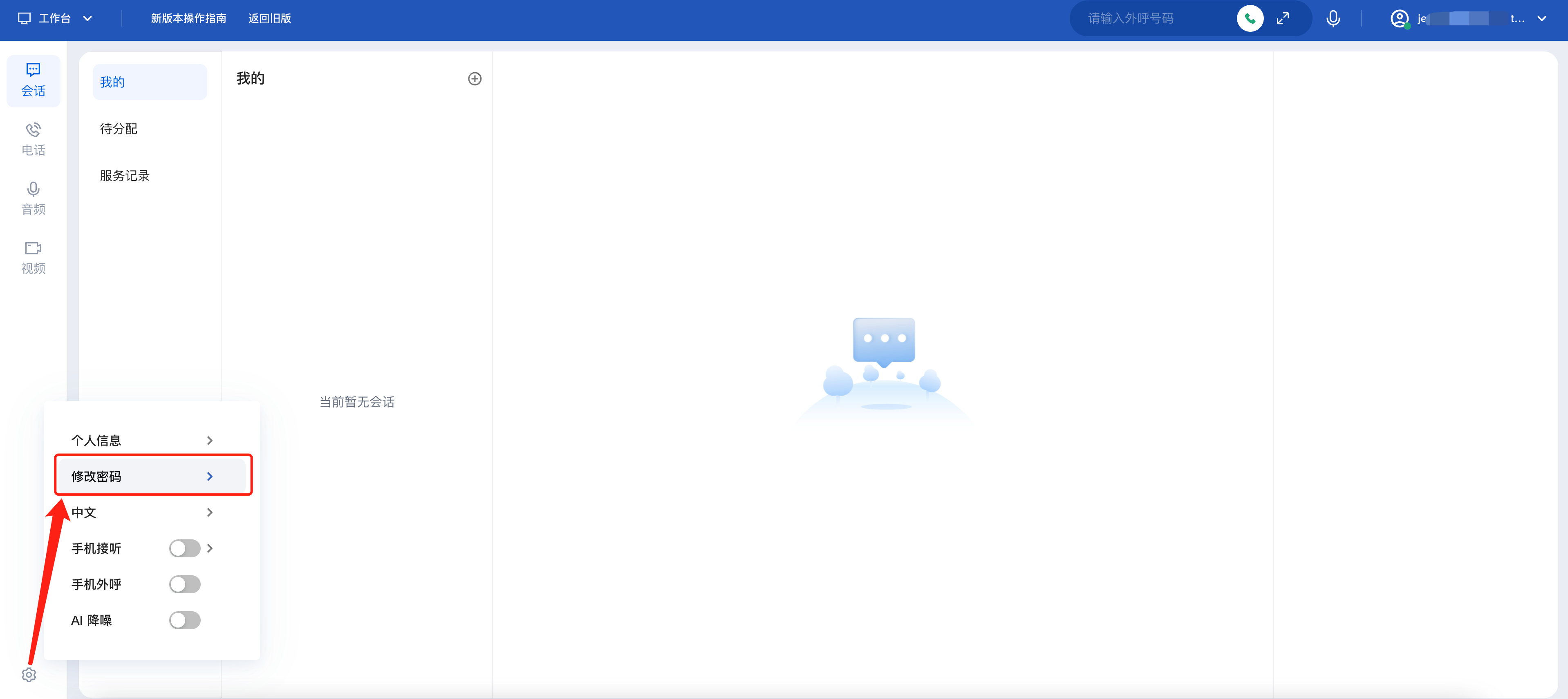 员工登录工作台后,可以单击左下角设置按钮,在悬浮框选择