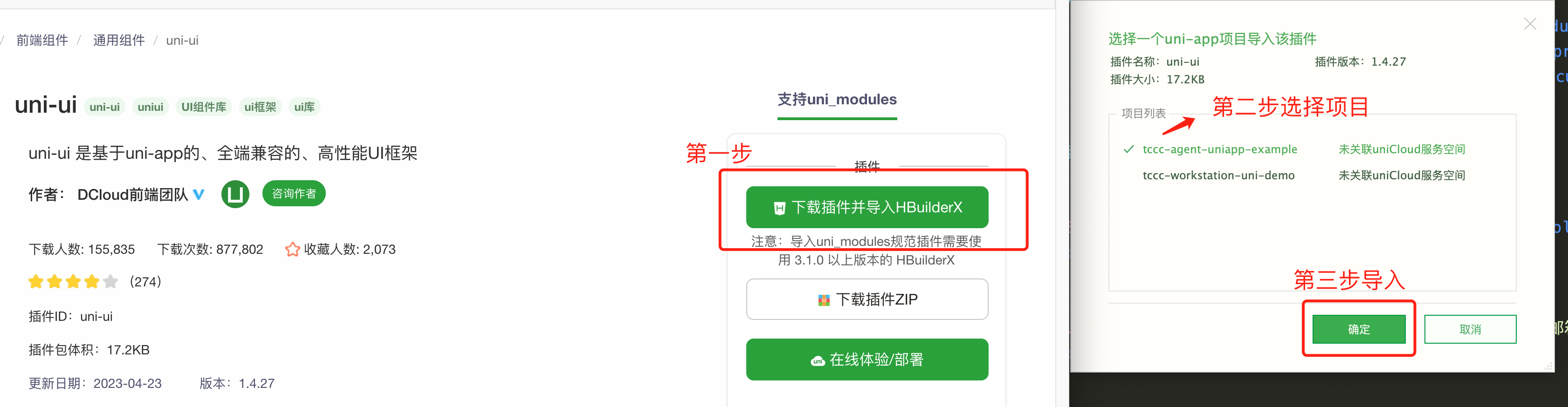 安装uni-ui。用 HBuilderX 导入uni-ui。 步骤3:配置 tccc-agent-uniapp-example 工程文件