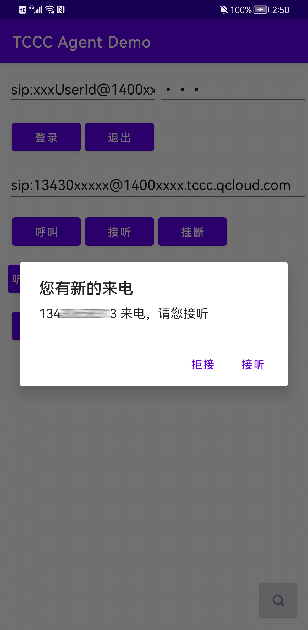 2. 登录成功后输入需要拨打的手机号即可完成拨打功能。