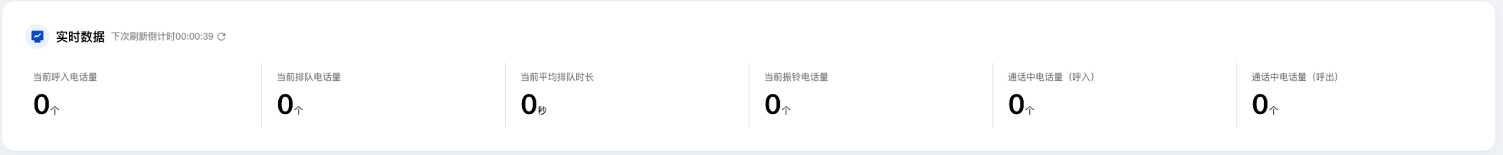 当前排队电话量 | 当前时刻,所有处于转人工排队中的呼入电话量。 |