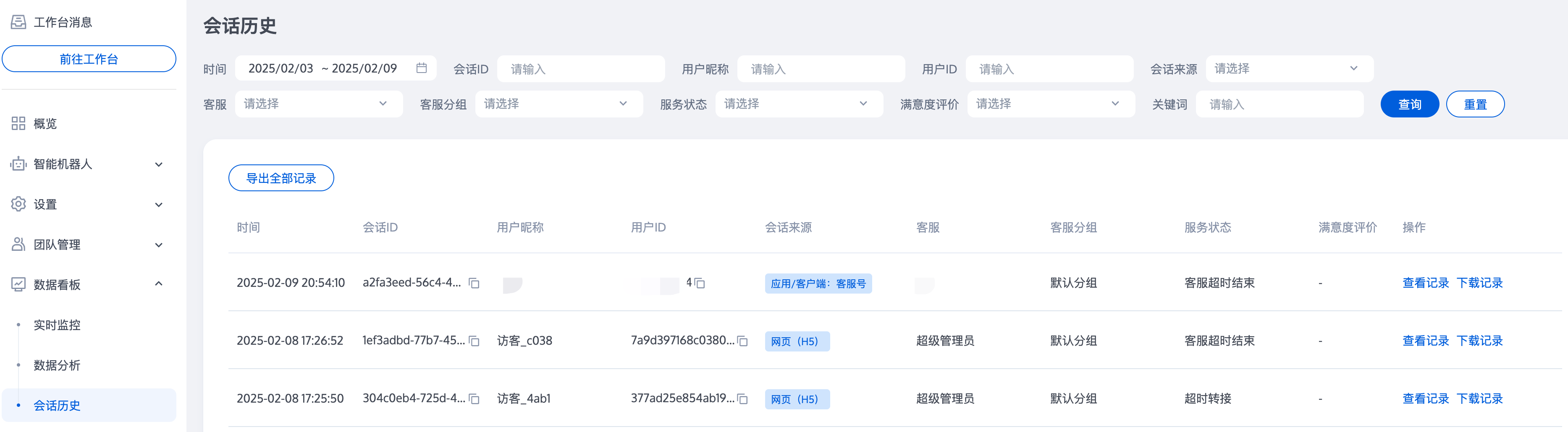 ,您可以在此处查看或导出历史会话。